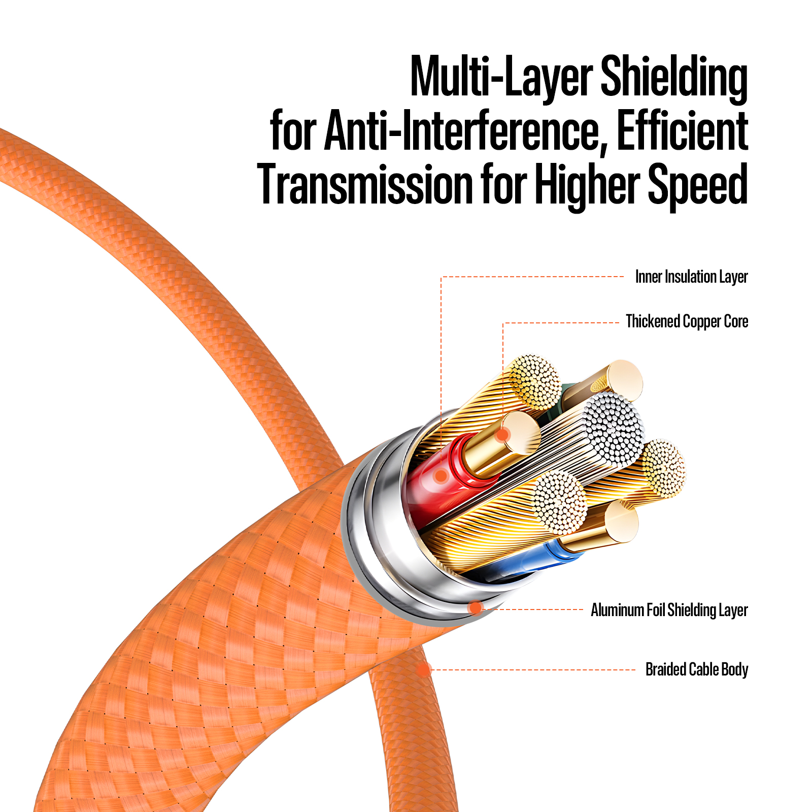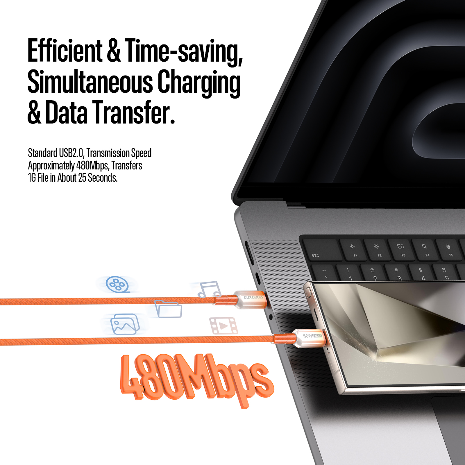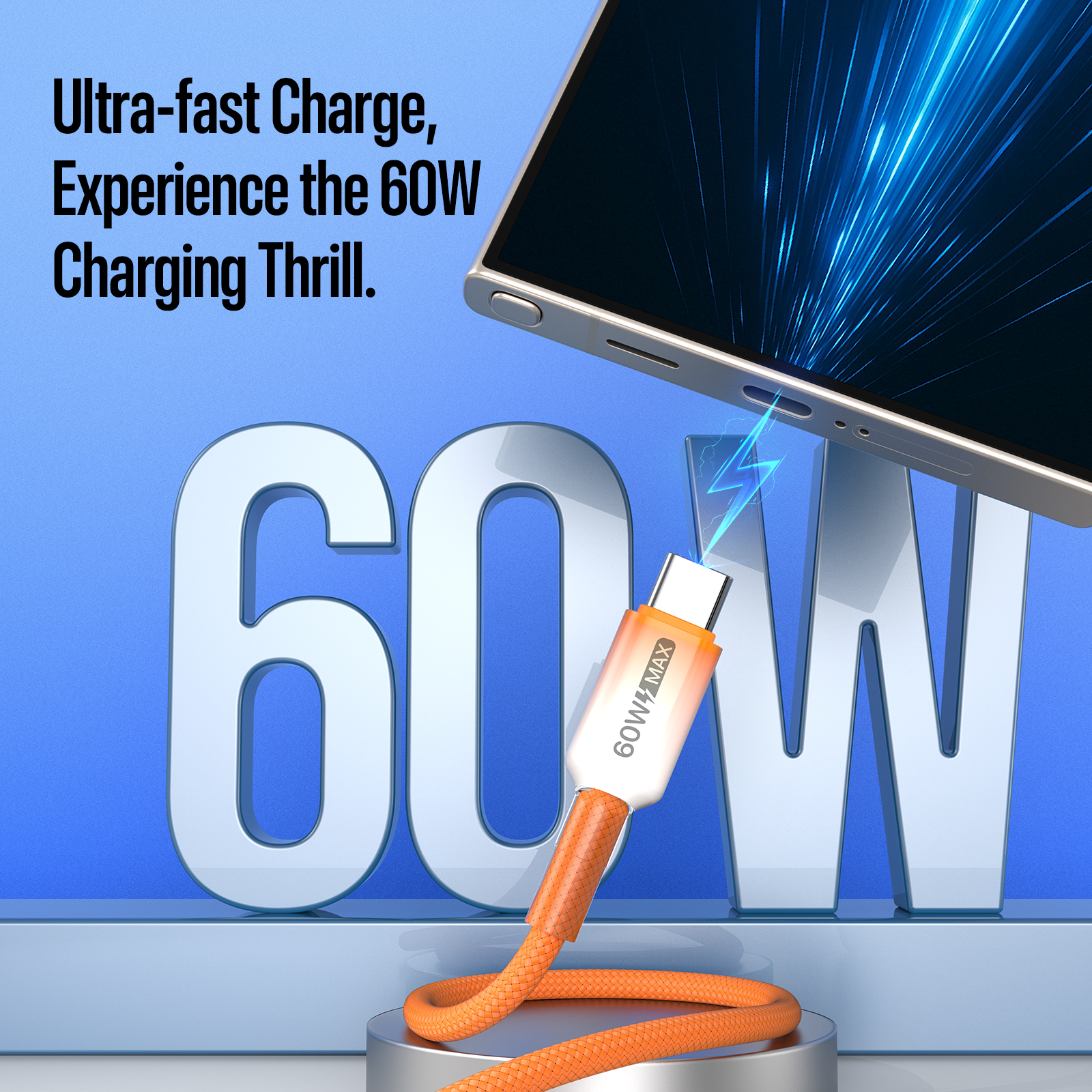 Прочная нейлоновая оплетка, усиленная конструкция, протестированная на более чем 10 000 изгибов. Синхронизация данных 480 Мбит/с, быстрая передача файлов во время зарядки. Градиентный дизайн, стильный прозрачный разъем с современным внешним видом. Широкая поддержка USB-C, совместим с телефонами, планшетами и ноутбуками.
