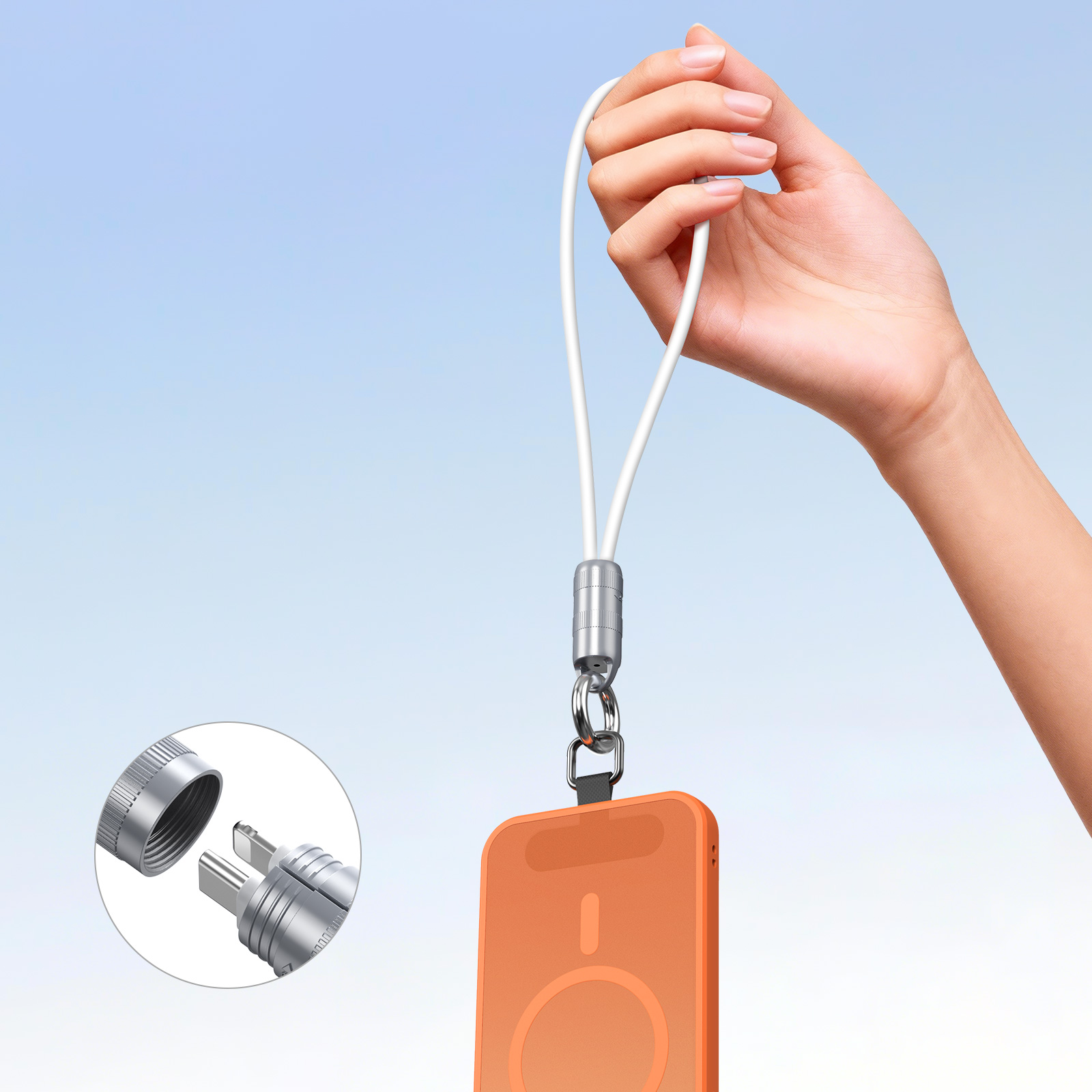 1. Носимый дизайн 2-в-1, Съемный ремешок и кабель в одном, для удобной переноски и мгновенного использования.