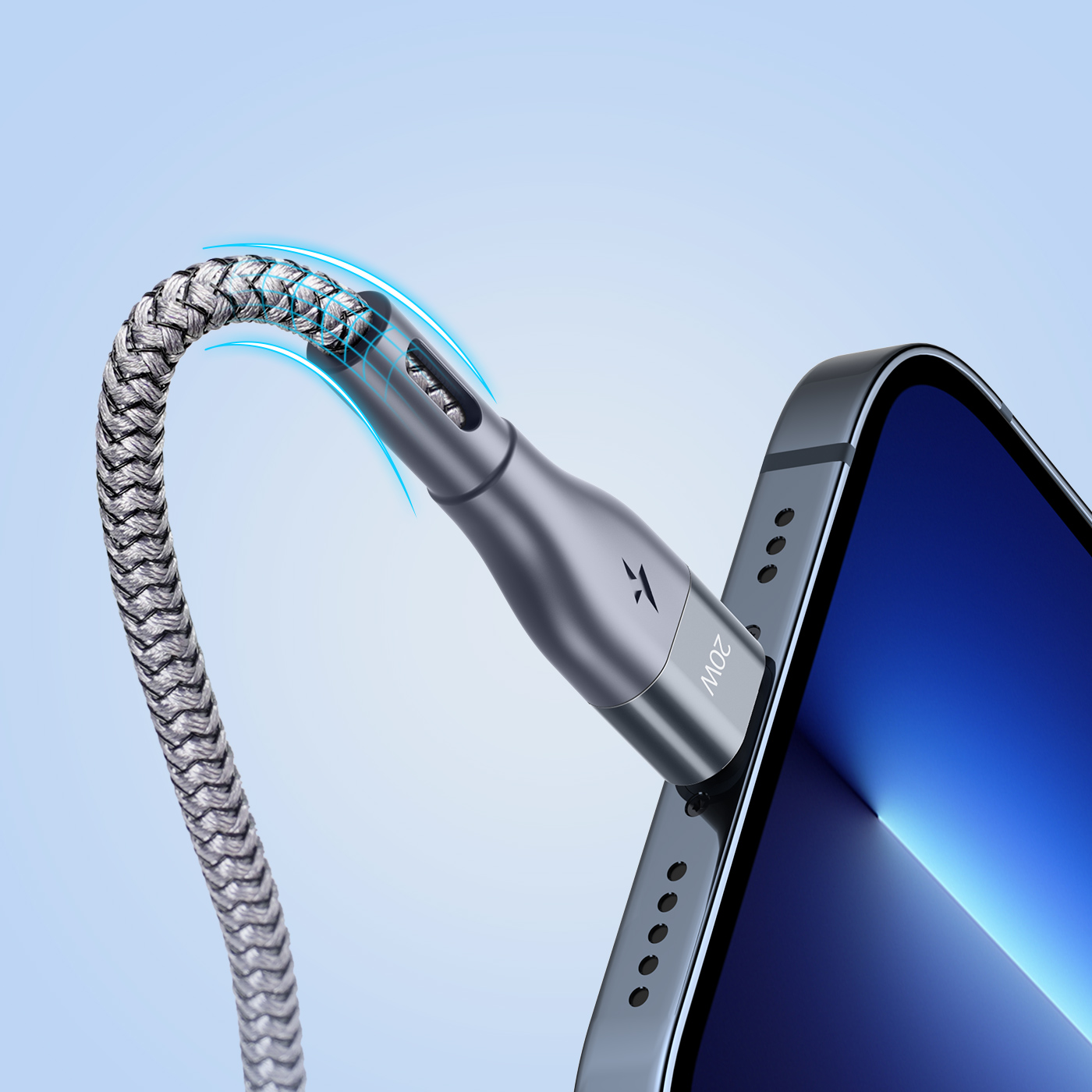 Кабель в тканевой оплетке длина 100см (1 метр) с разъемом Type C на Lightning с быстрой зарядкой PD 20W от Duzzona, серия A1 Cable