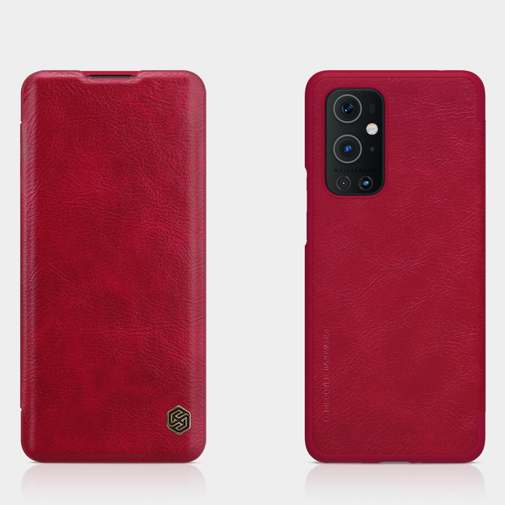 Ударопрочный устойчивый к царапинам и нескользящий чехол книжка от Nillkin серии Qin Leather красного цвета на телефон OnePlus 9 Pro