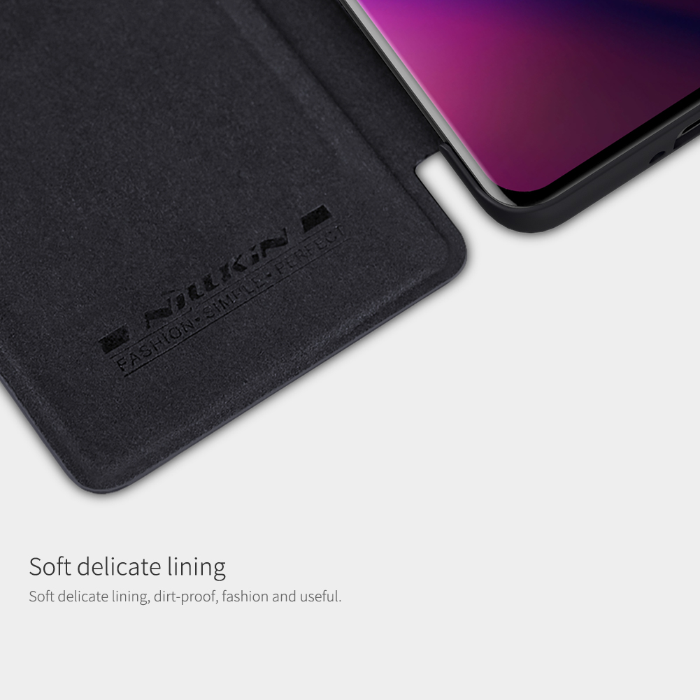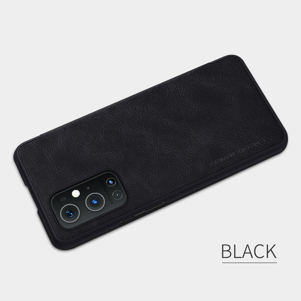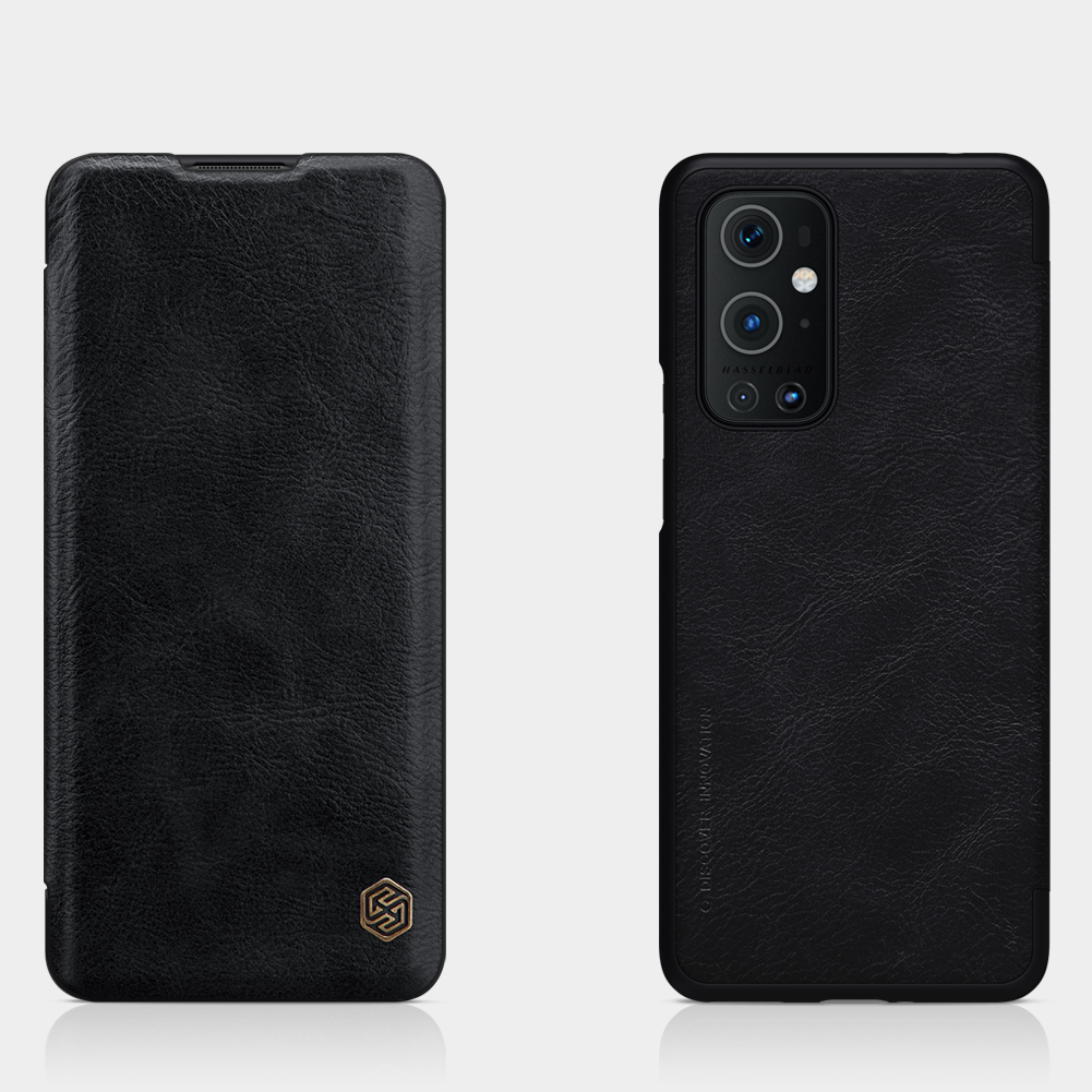 Ударопрочный, устойчивый к царапинам и нескользящий чехол книжка от Nillkin Qin Leather черного цвета на телефон OnePlus 9 Pro