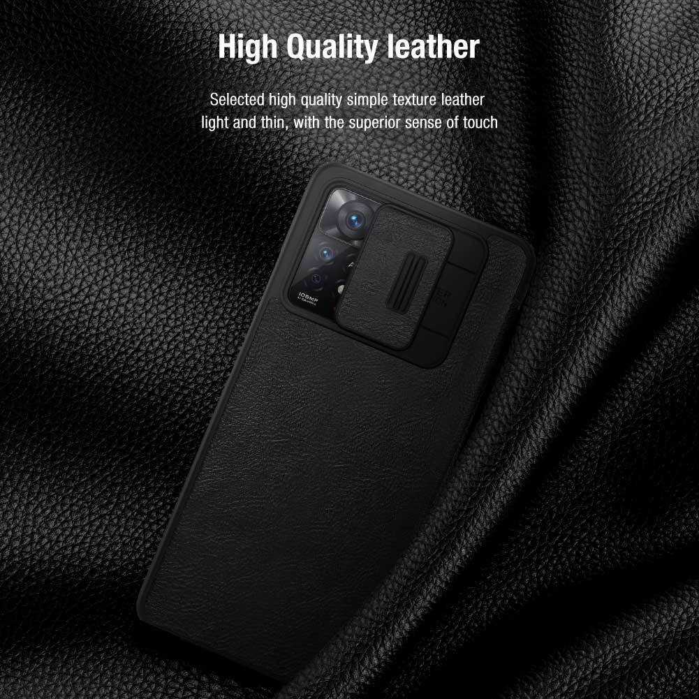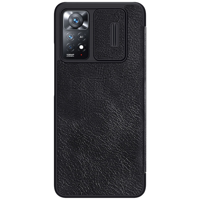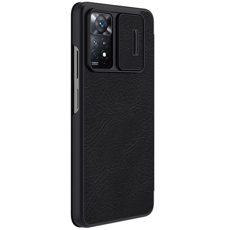 Ударопрочный устойчивый к царапинам и нескользящий чехол книжка от Nillkin Qin Pro Leather черного цвета на телефон Xiaomi Redmi Note 11 Pro Global и Redmi Note 12 Pro 4G, с защитной шторкой для задней камеры