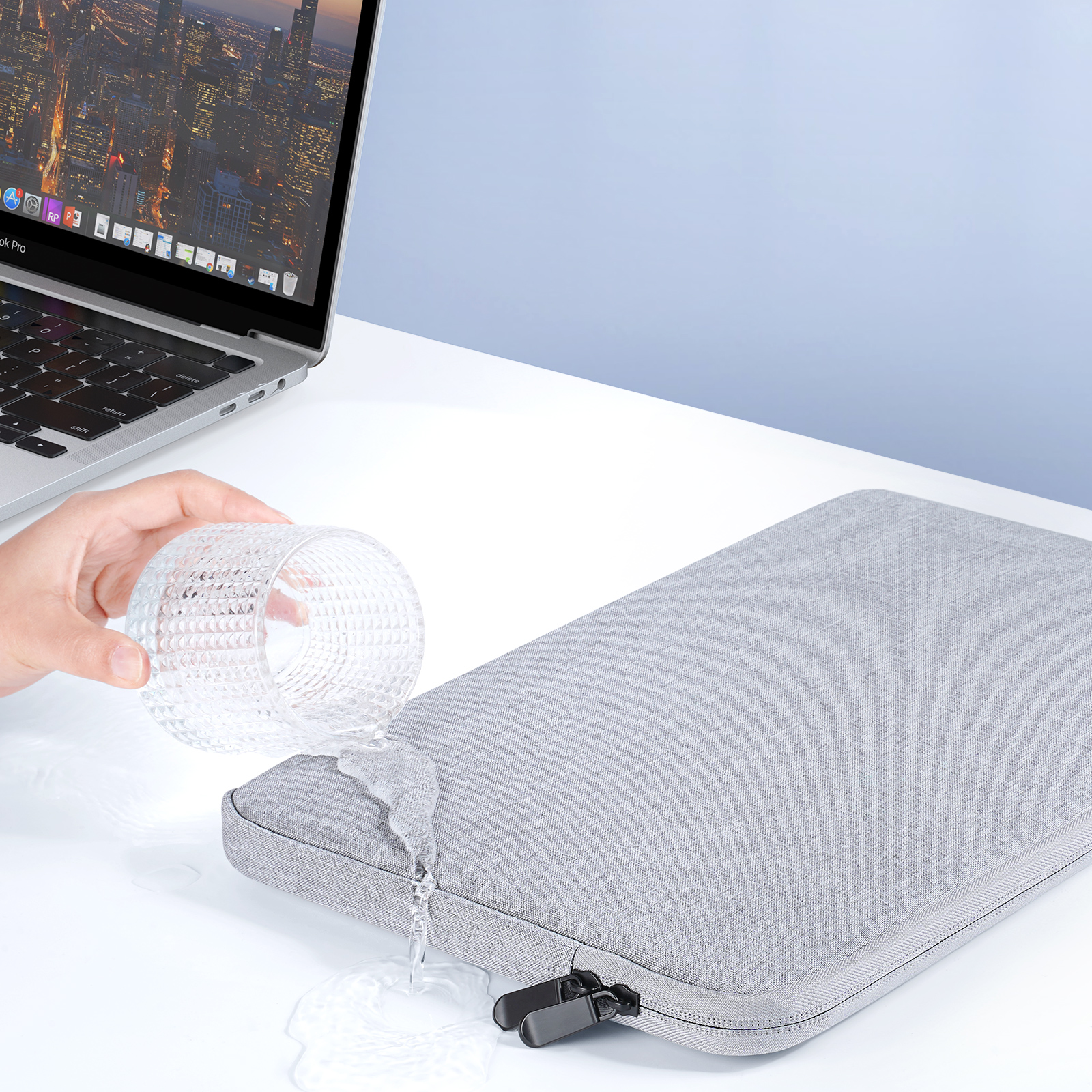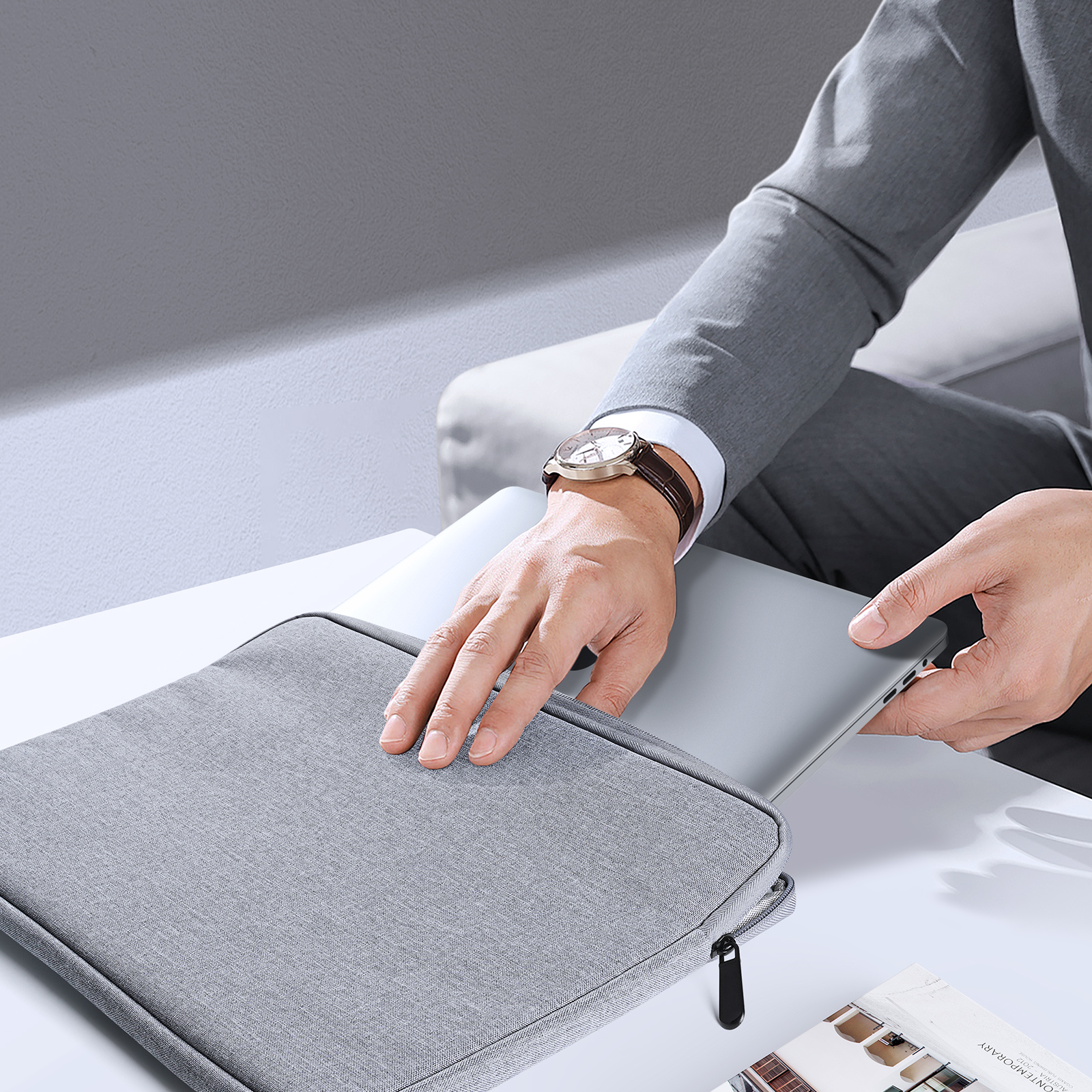 Сумка чехол светло-серого цвета от Dux Ducis для ноутбука или планшета размером от 15,5 до 16 дюймов, серия LBDA Series. Изготовлена из полиэфирной ткани высокой плотности, водонепроницаемая подкладка, отделение из жемчужного хлопка и мягкая подкладка из кристального бархата.
