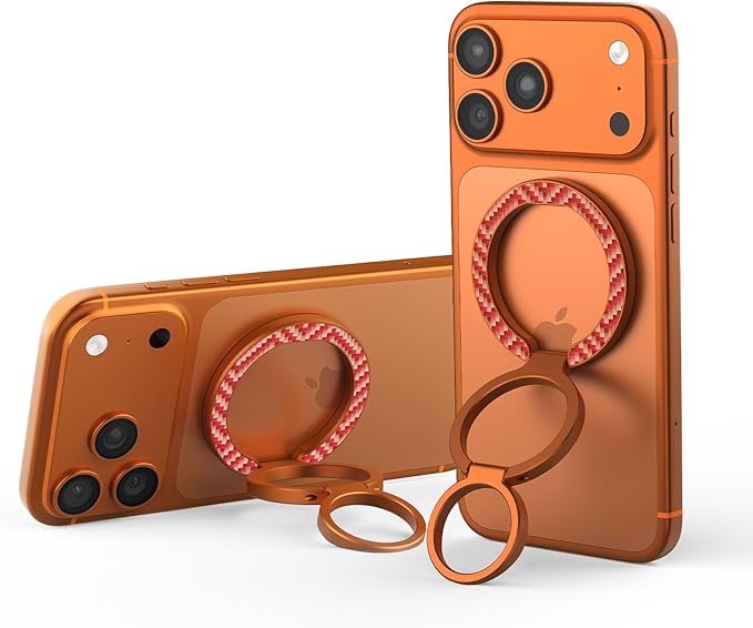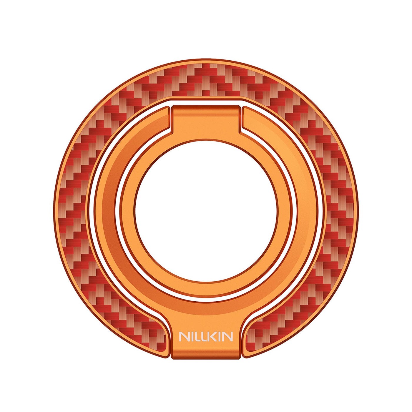 Магнитная подставка-держатель покрытый оранжевым арамидным волокном (карбон), серия FiberSnap Ring Kevlar от Nillkin. Арамидное волокно прочное, сверхлегкое и не изнашивается, как пластик. Оно обеспечивает надежный хват и стильный внешний вид вашего телефона. Двухосевой шарнир позволяет вращать на 360 и останавливаться в любом месте - без щелчков, без ограничений.