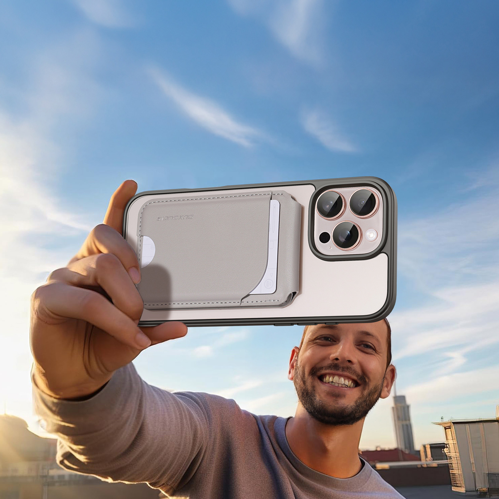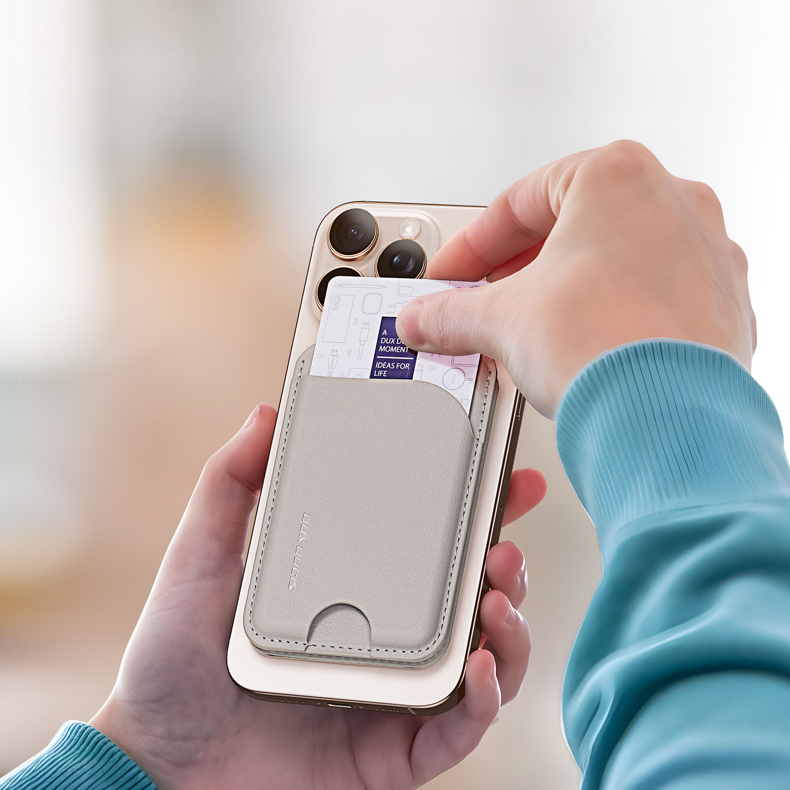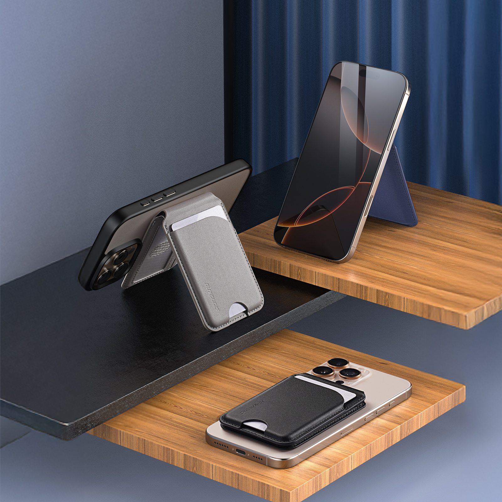 Магнитный держатель картхолдер с MagSafe серого цвета от Dux Ducis, серия Neva Series Magnetic Wallet Stand