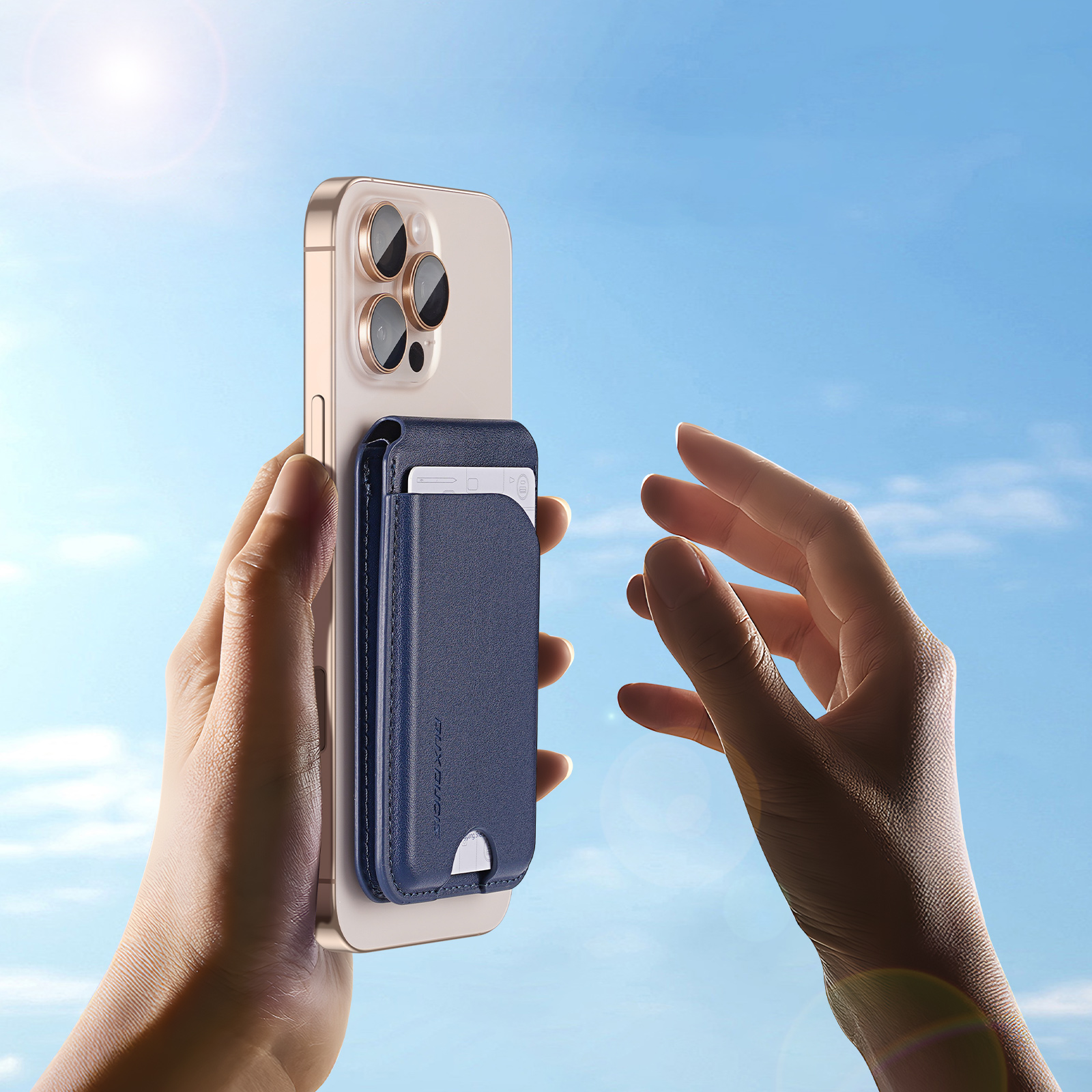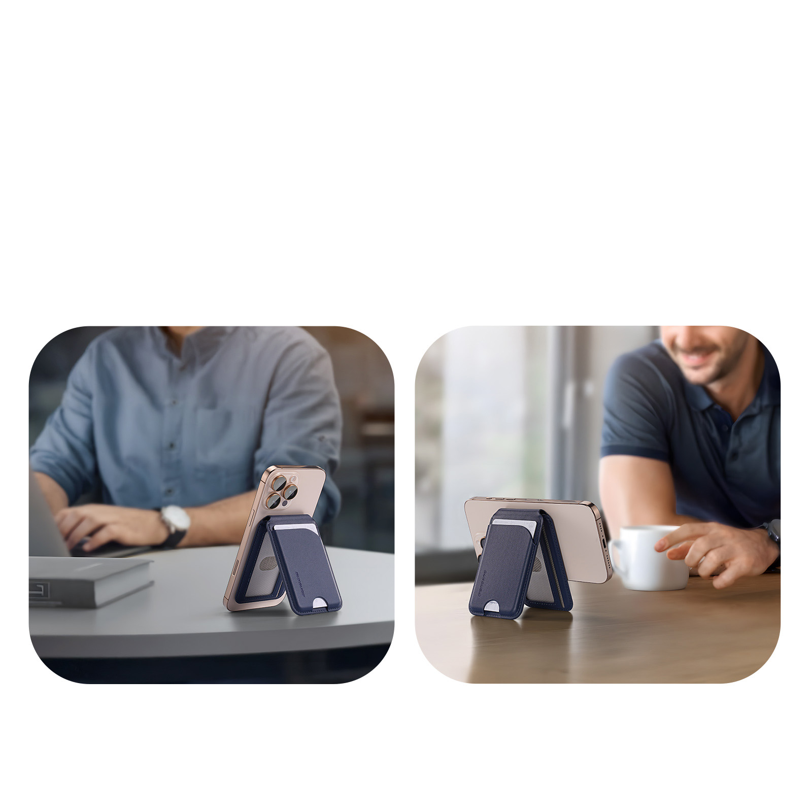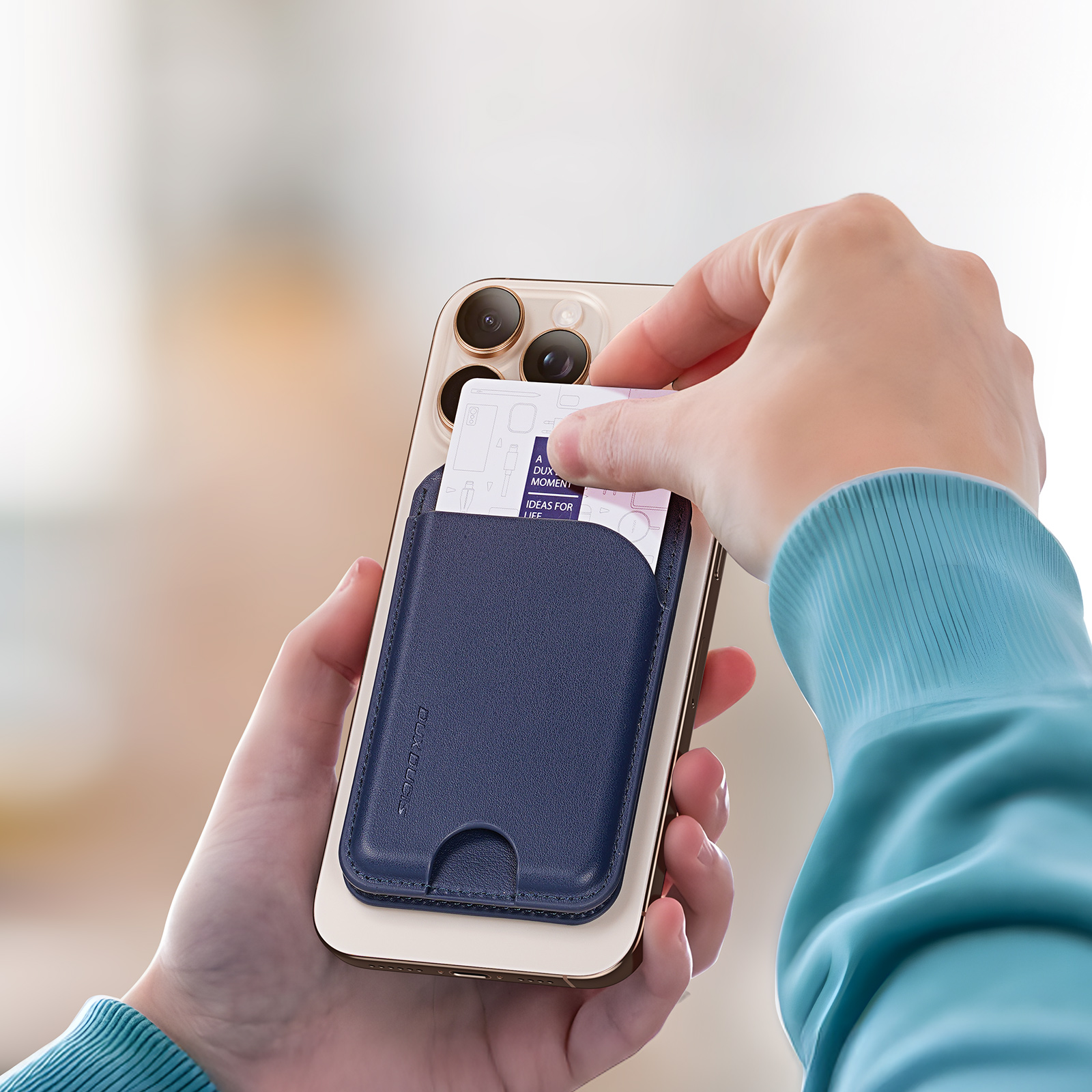 Магнитный держатель картхолдер с MagSafe синего цвета от Dux Ducis, серия Neva Series Magnetic Wallet Stand