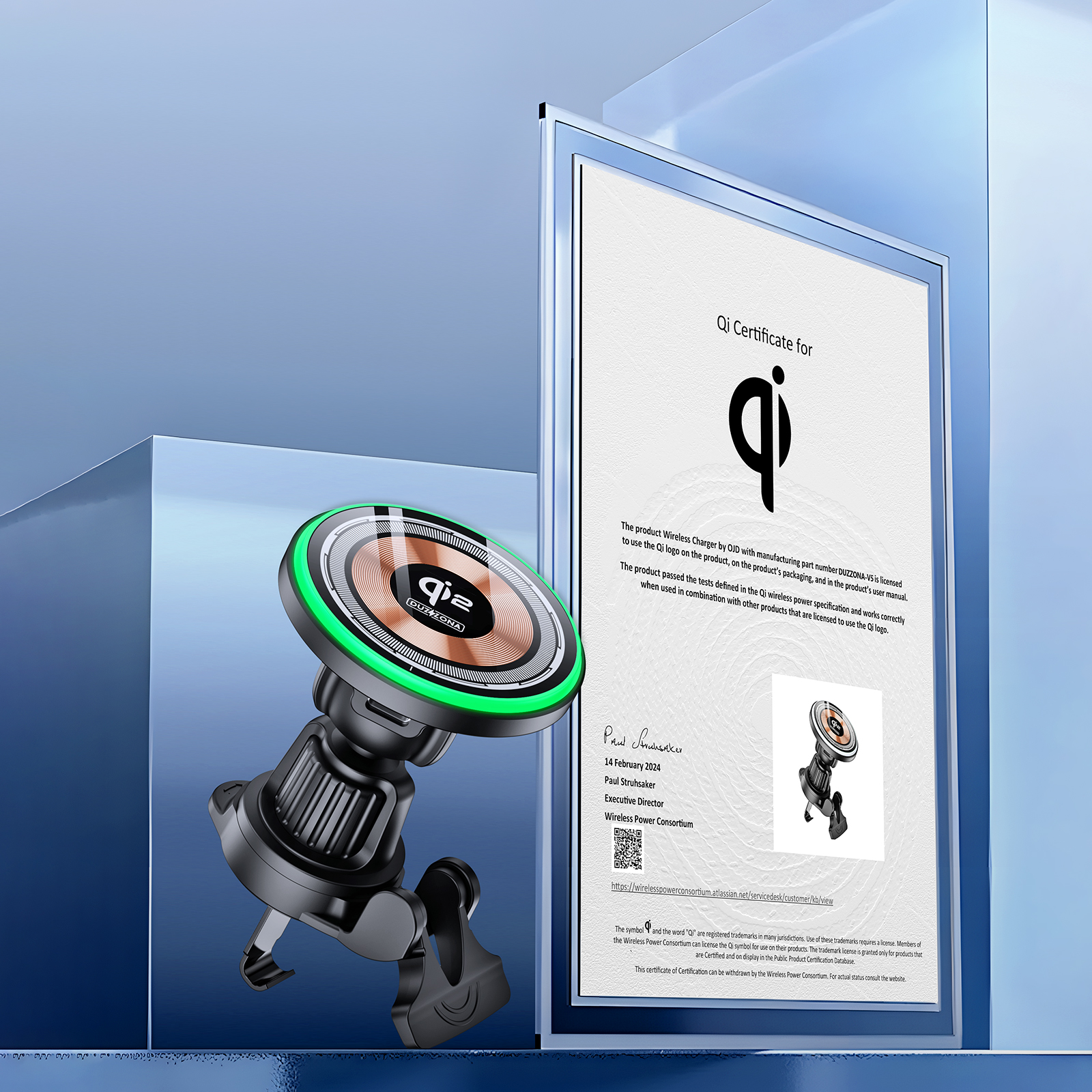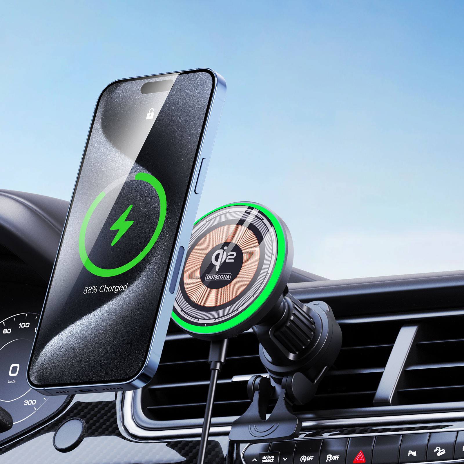Магнитное беспроводное автомобильное зарядное устройство MagSafe, версия V5 Qi2 Magnetic 15W, Duzzona. В комплекте провод с разъемом Type C-Type C.