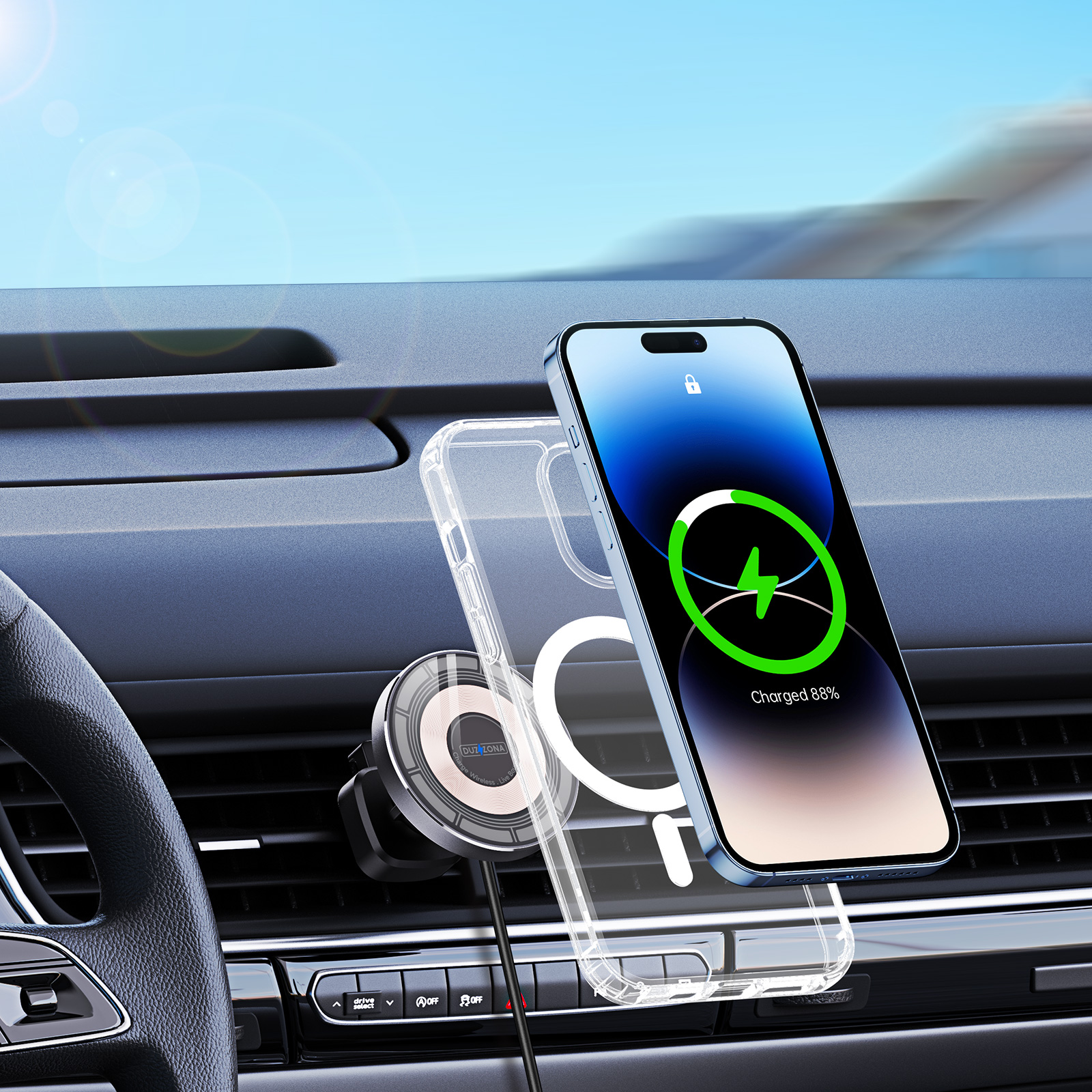 Магнитное беспроводное автомобильное зарядное устройство V2 Wireless Car Charger 15W, Duzzona. В комплекте провод с разъемом Type C-Type C.
