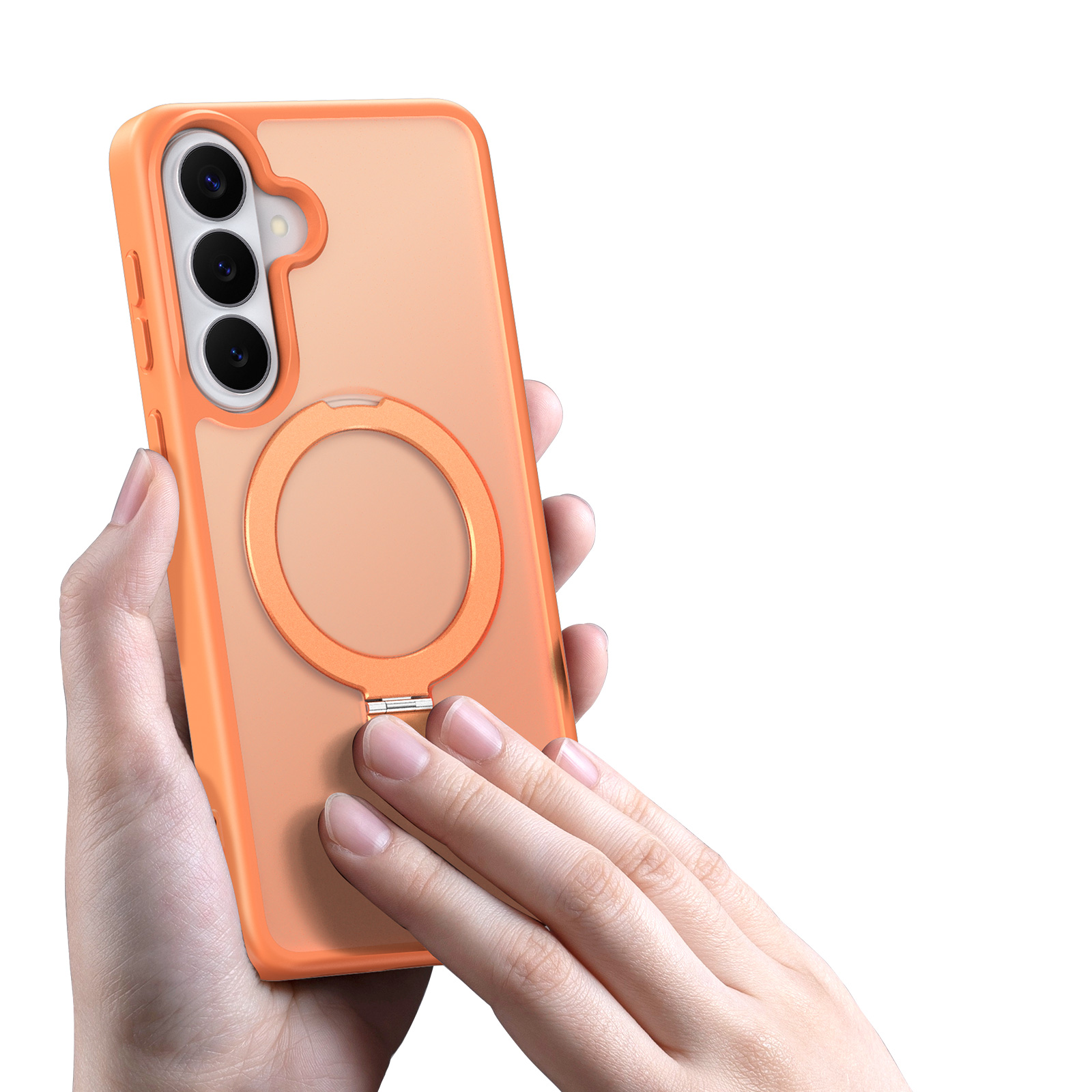 Матовый чехол оранжевого цвета с поддержкой MagSafe для Samsung Galaxy S26+ Plus из серии Yind Series Case от Dux Ducis - это яркое и функциональное решение, сочетающее в себе защиту и инновационные возможности. Чехол выполнен из мягкого матового материала насыщенного апельсинового оттенка, который не только привлекает внимание, но и обеспечивает надежную защиту смартфона от царапин и повреждений. Поверхность чехла устойчива к отпечаткам пальцев, сохраняя свежий и привлекательный вид долгое время. Технология MagSafe позволяет быстро и удобно подключать беспроводные зарядные устройства и аксессуары, обеспечивая стабильность соединения и эффективность зарядки. Встроенная магнитная откидная подставка даёт возможность удобно разместить смартфон в горизонтальном положении, что отлично подходит для просмотра видео, чтения или работы с приложениями. Специальный вырез в нижней части чехла облегчает доступ к разъёмам и кнопкам, сохраняя при этом защиту корпуса. Оранжевый цвет чехла привнесёт нотку жизнерадостности и оригинальности в ваш ежедневный образ. Этот чехол станет прекрасным выбором для тех, кто ценит яркие акценты, функциональность и качественную защиту своего устройства.