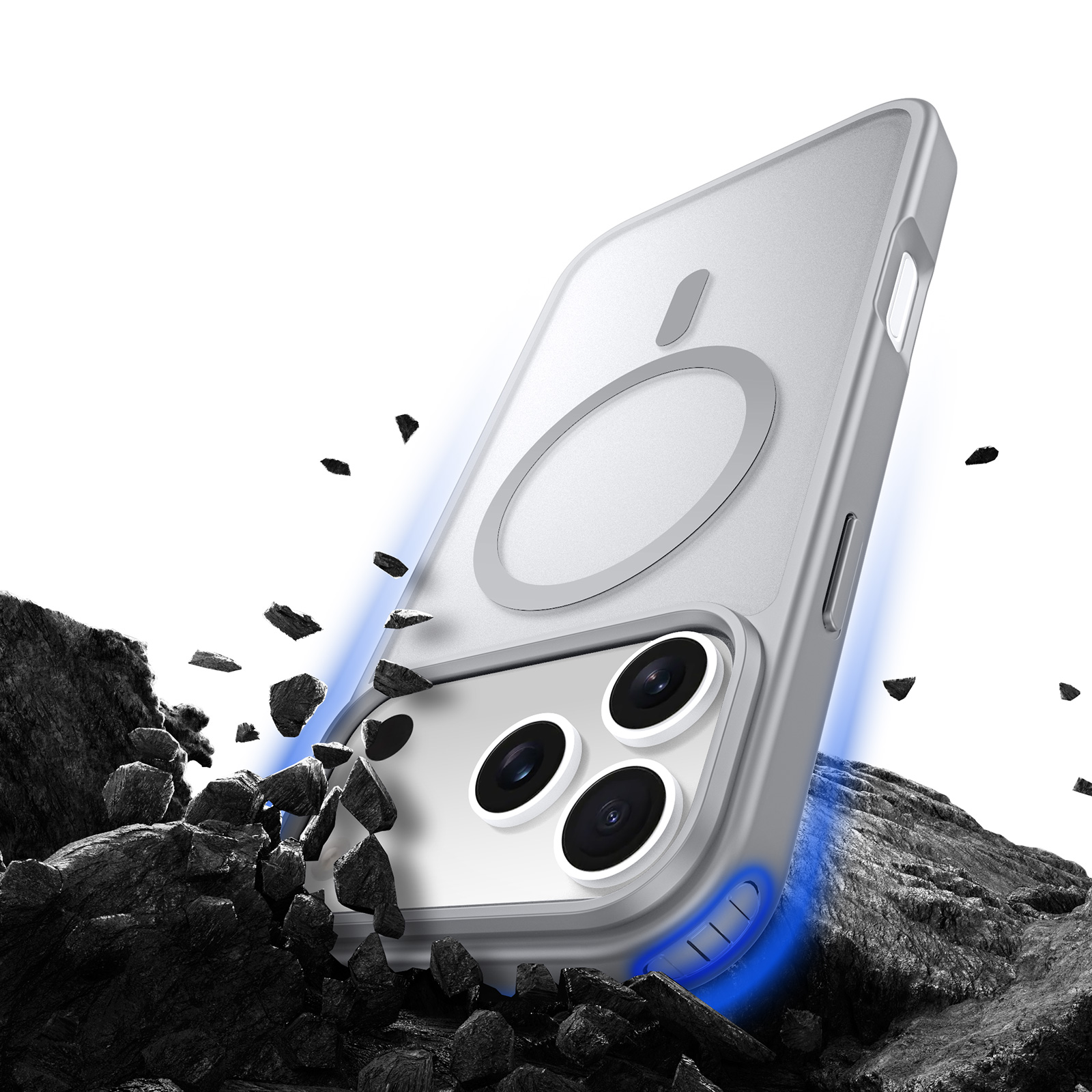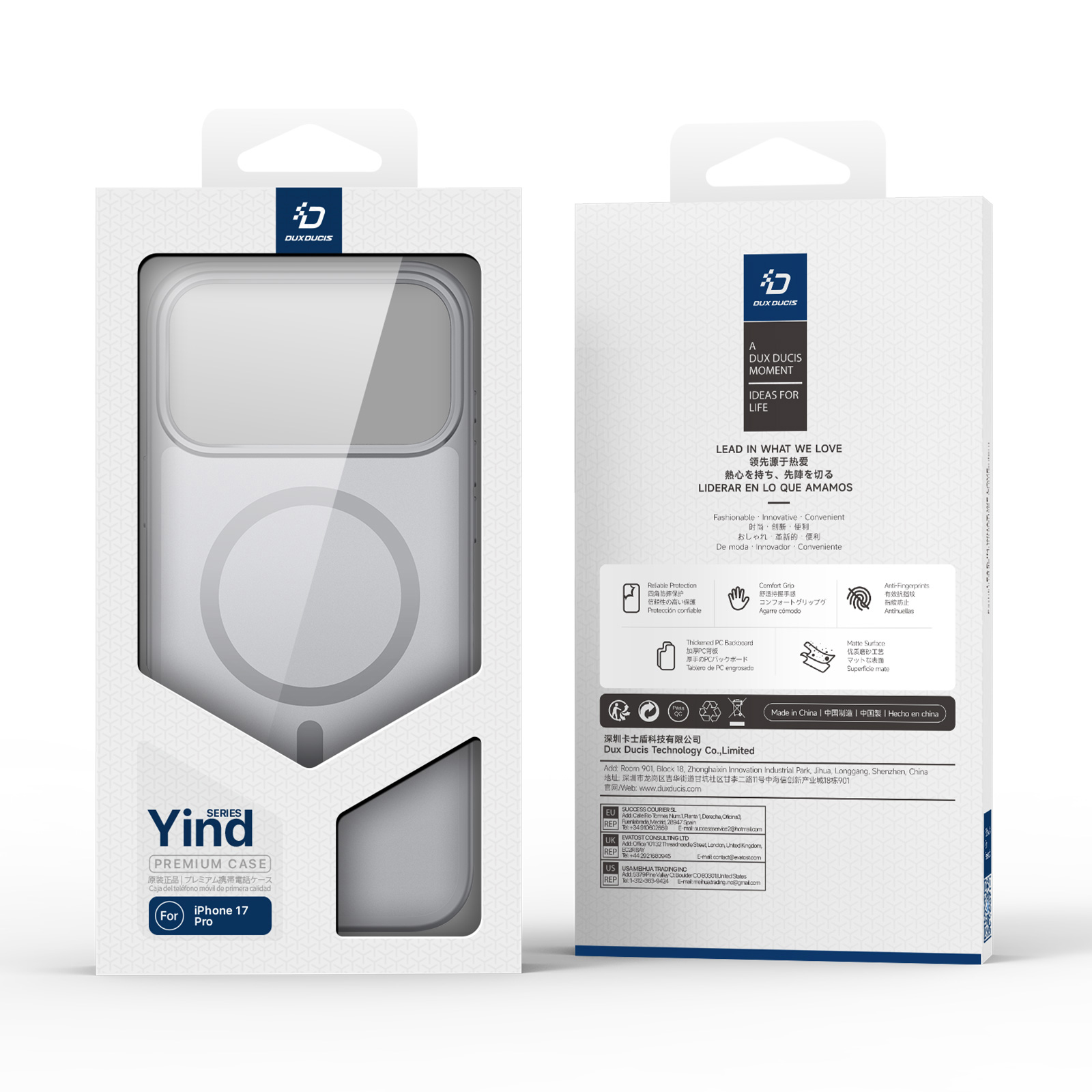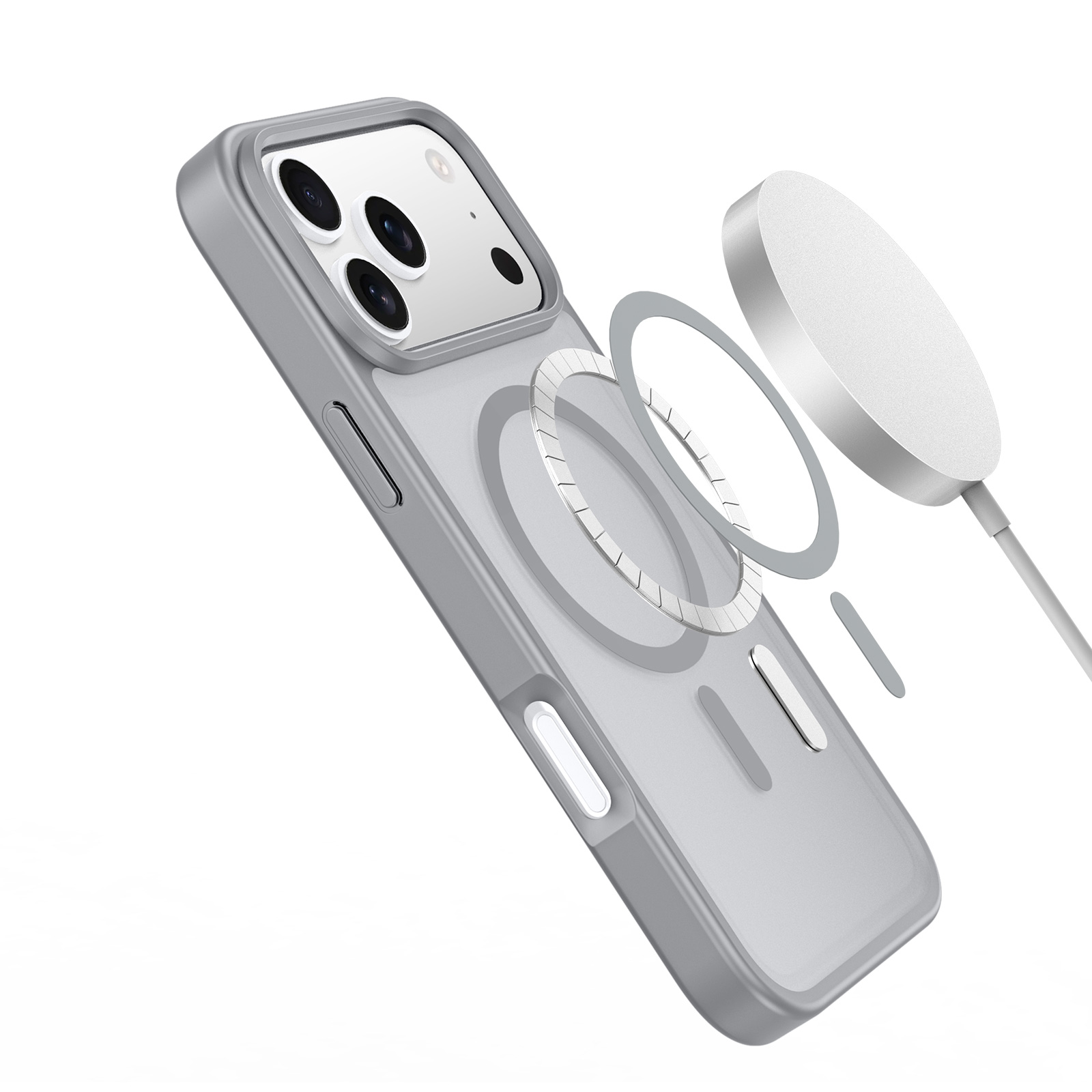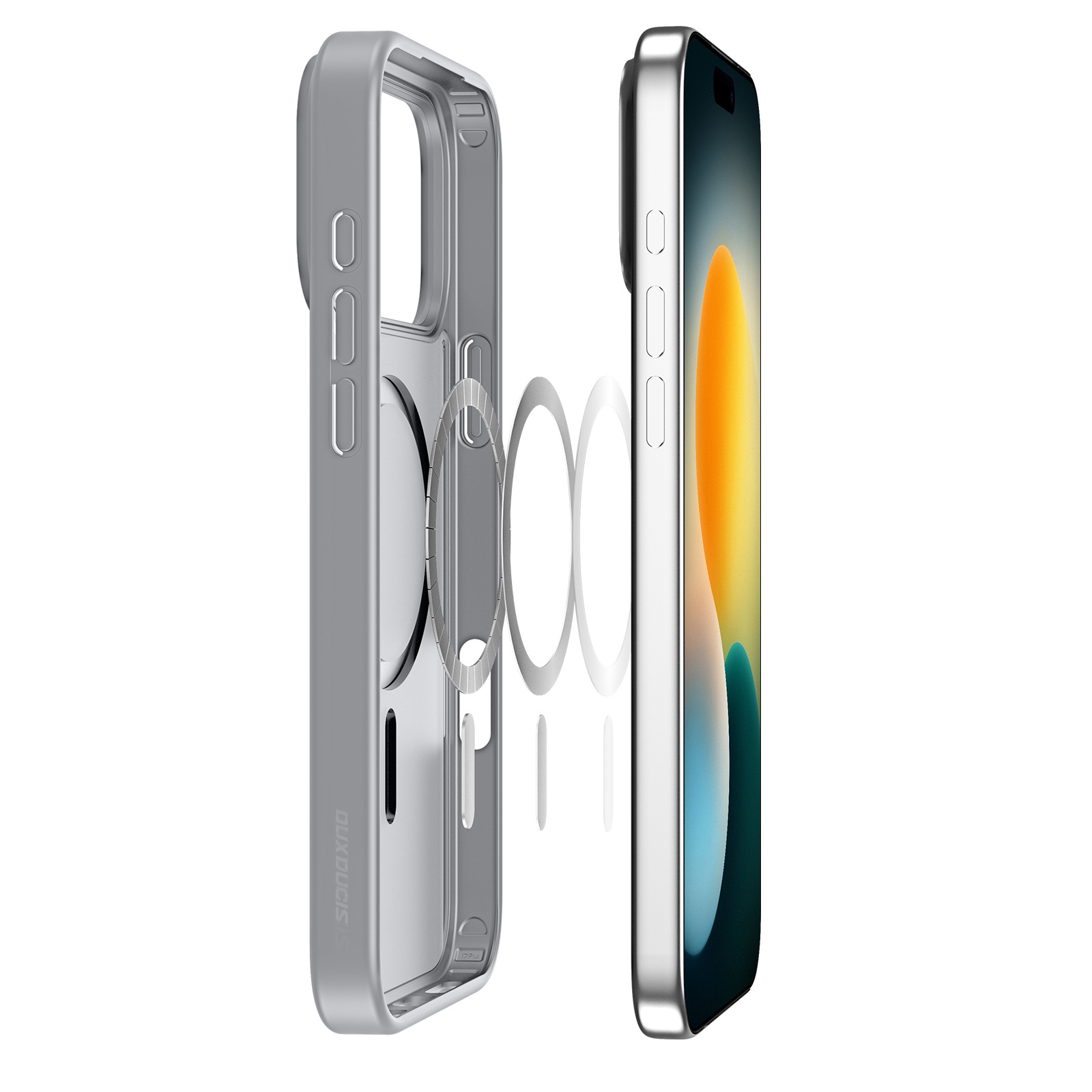 Матовый тонированный чехол серого цвета с поддержкой беспроводной зарядки MagSage от Dux Ducis серии Yind Series Case для смартфона iPhone 17 Pro изготавливается из экологичных материалов путем высокоточного литья под давление с высокой температурой.