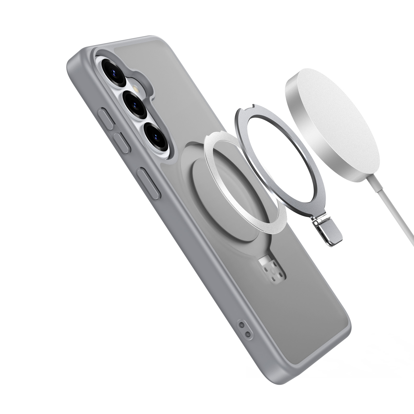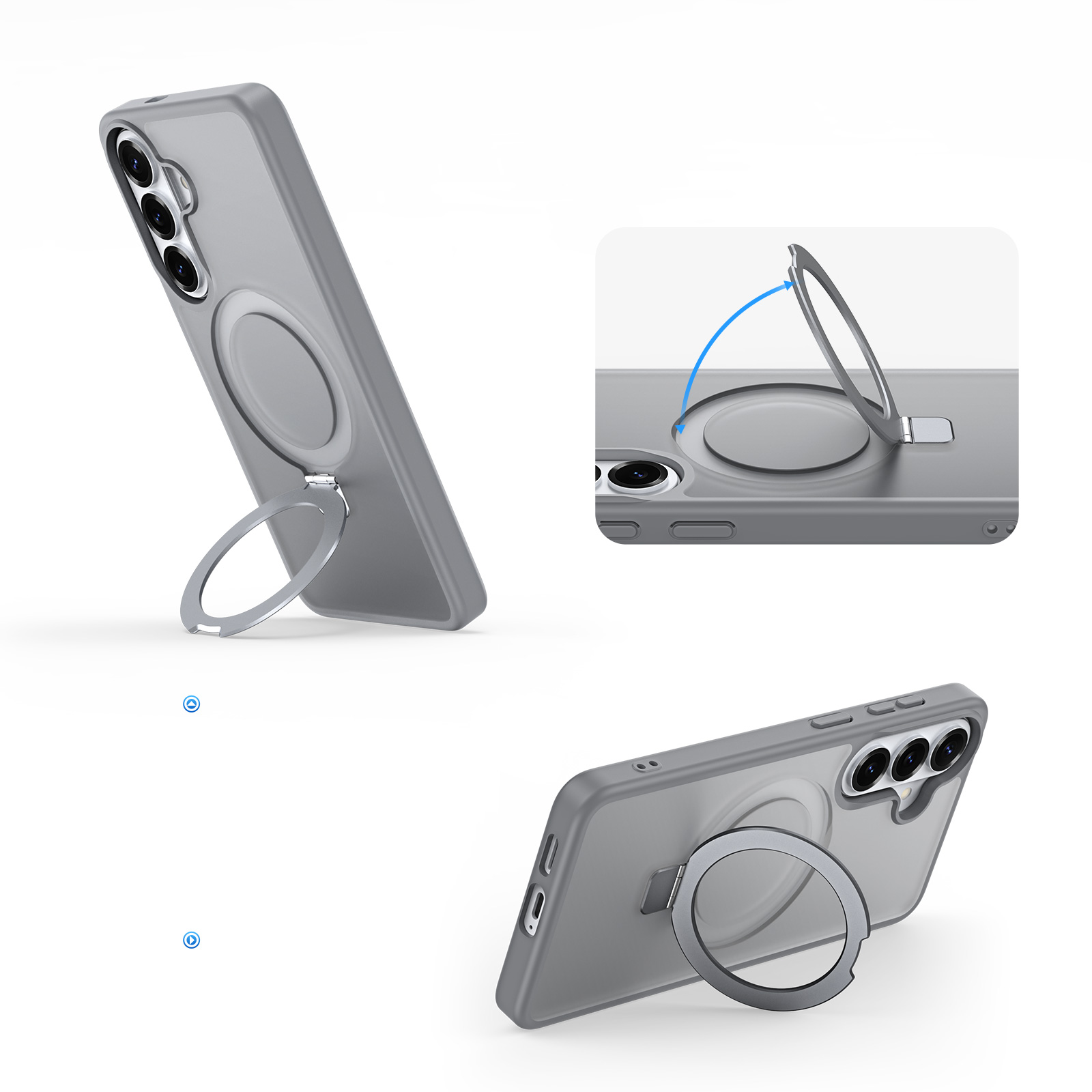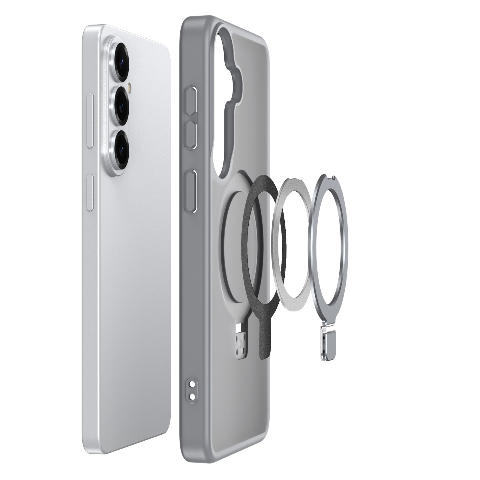 Серый матовый чехол с поддержкой MagSafe для Samsung Galaxy S26 из линейки Yind Series Case от бренда Dux Ducis представляет собой премиальное решение для защиты вашего устройства. Выполненный из высококачественных материалов, этот чехол эффективно предохраняет смартфон от мелких повреждений и царапин, сохраняя его первоначальный вид. Особенность аксессуара — интегрированная магнитная система MagSafe, упрощающая подключение аксессуаров и беспроводную зарядку. Удобная откидная подставка позволяет устанавливать телефон вертикально, обеспечивая комфортный просмотр видео и работу с приложениями. Округлая форма отверстия внизу облегчает извлечение телефона, сохраняя целостность защитной конструкции. Строгий серый оттенок и матовая текстура придают изделию изысканный внешний вид, делая его универсальным вариантом для повседневного использования. Этот чехол идеально подойдёт пользователям, стремящимся сочетать надёжную защиту и эстетику в одном продукте.