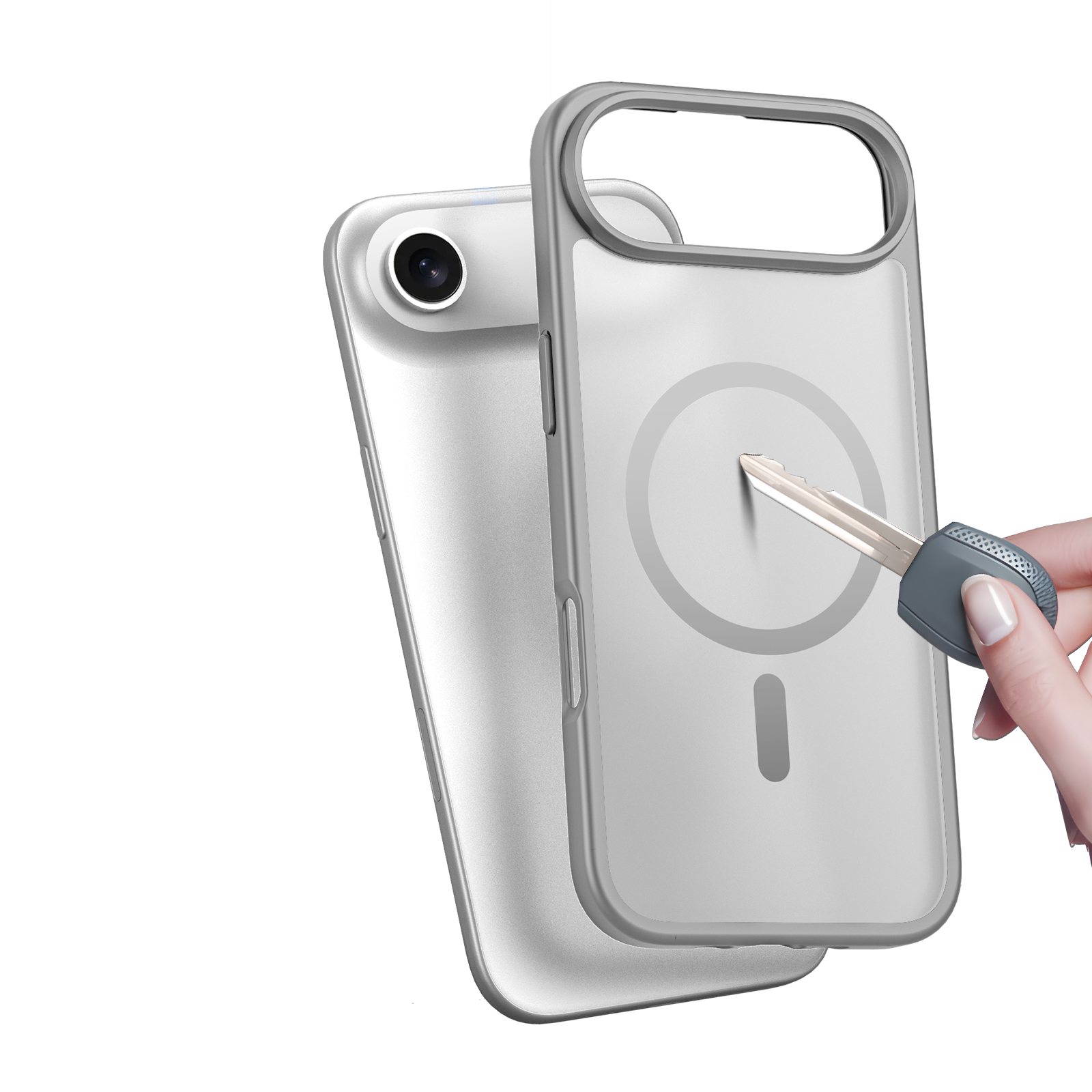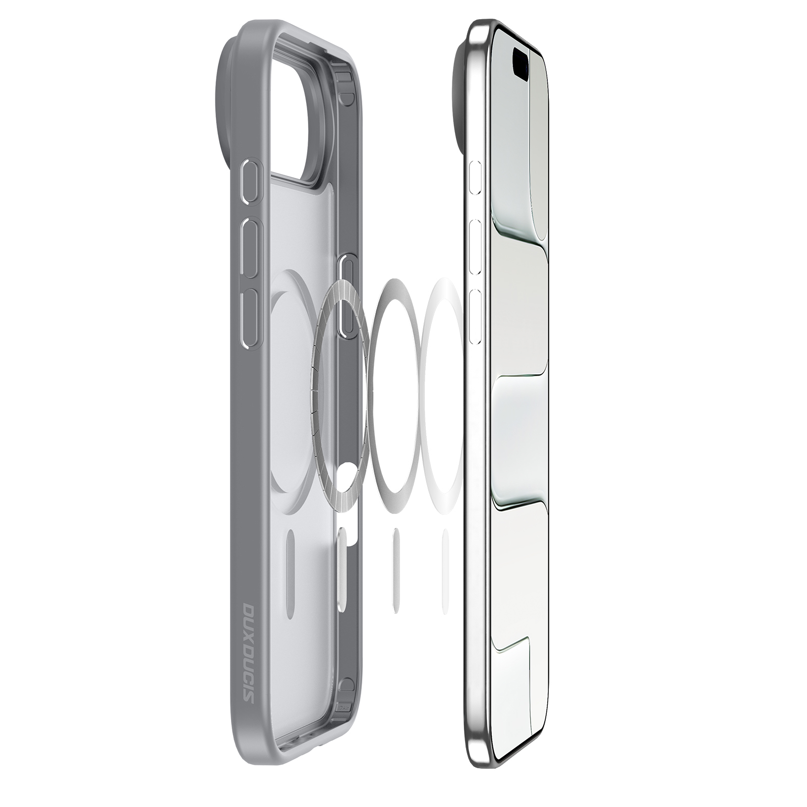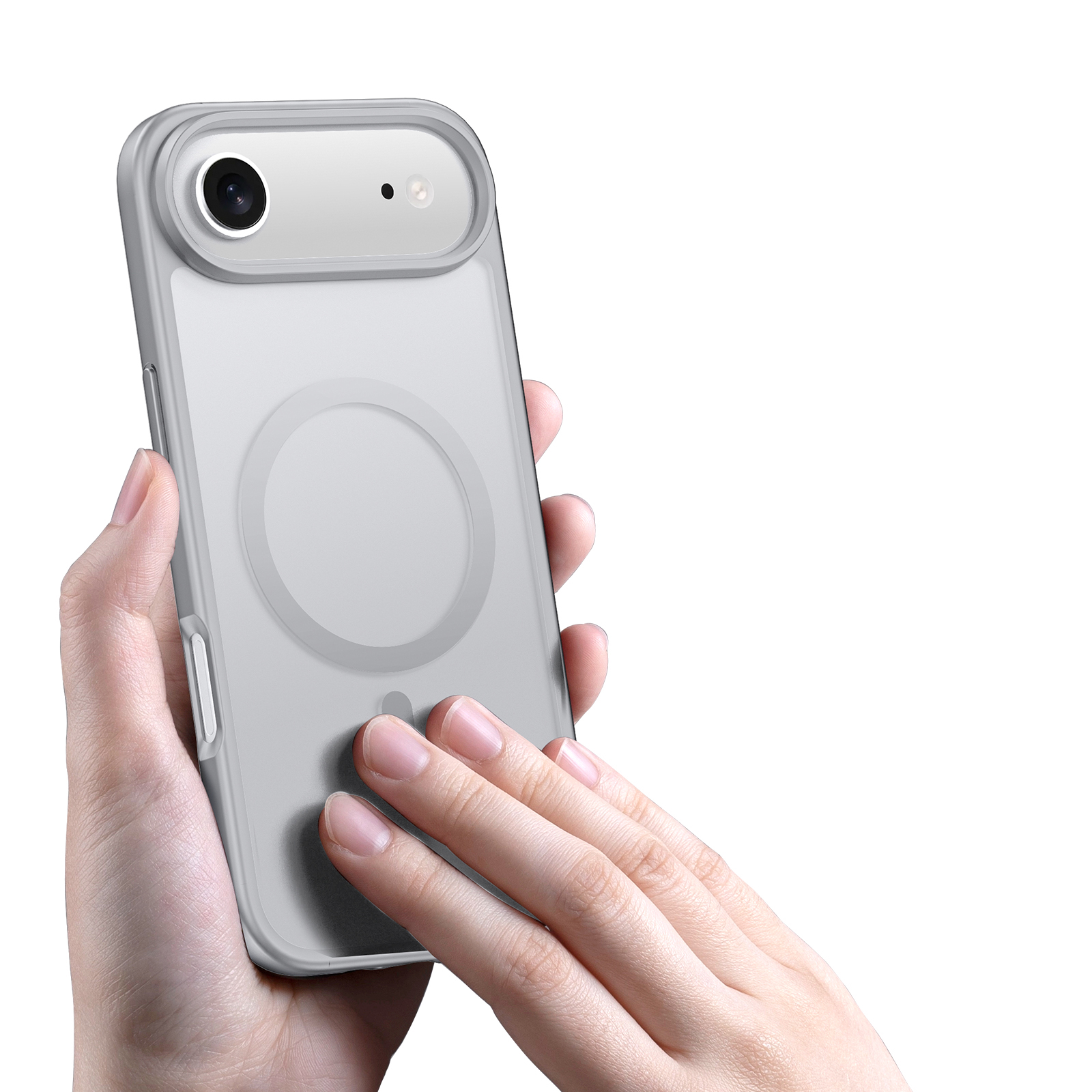 Матовый прозрачный чехол серого цвета с поддержкой беспроводной зарядки MagSage от Dux Ducis серии Yind Series Case для смартфона iPhone Air изготавливается из экологичных материалов путем высокоточного литья под давление с высокой температурой.