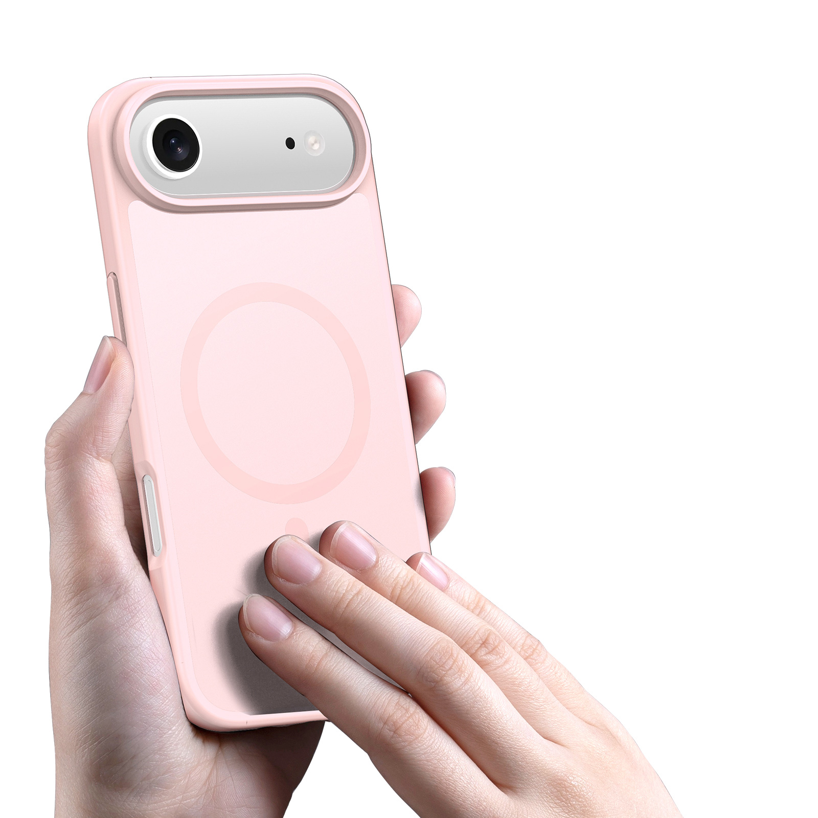 Матовый прозрачный чехол светло-розового цвета (Light Pink) с поддержкой беспроводной зарядки MagSage от Dux Ducis серии Yind Series Case для смартфона iPhone Air изготавливается из экологичных материалов путем высокоточного литья под давление с высокой температурой.