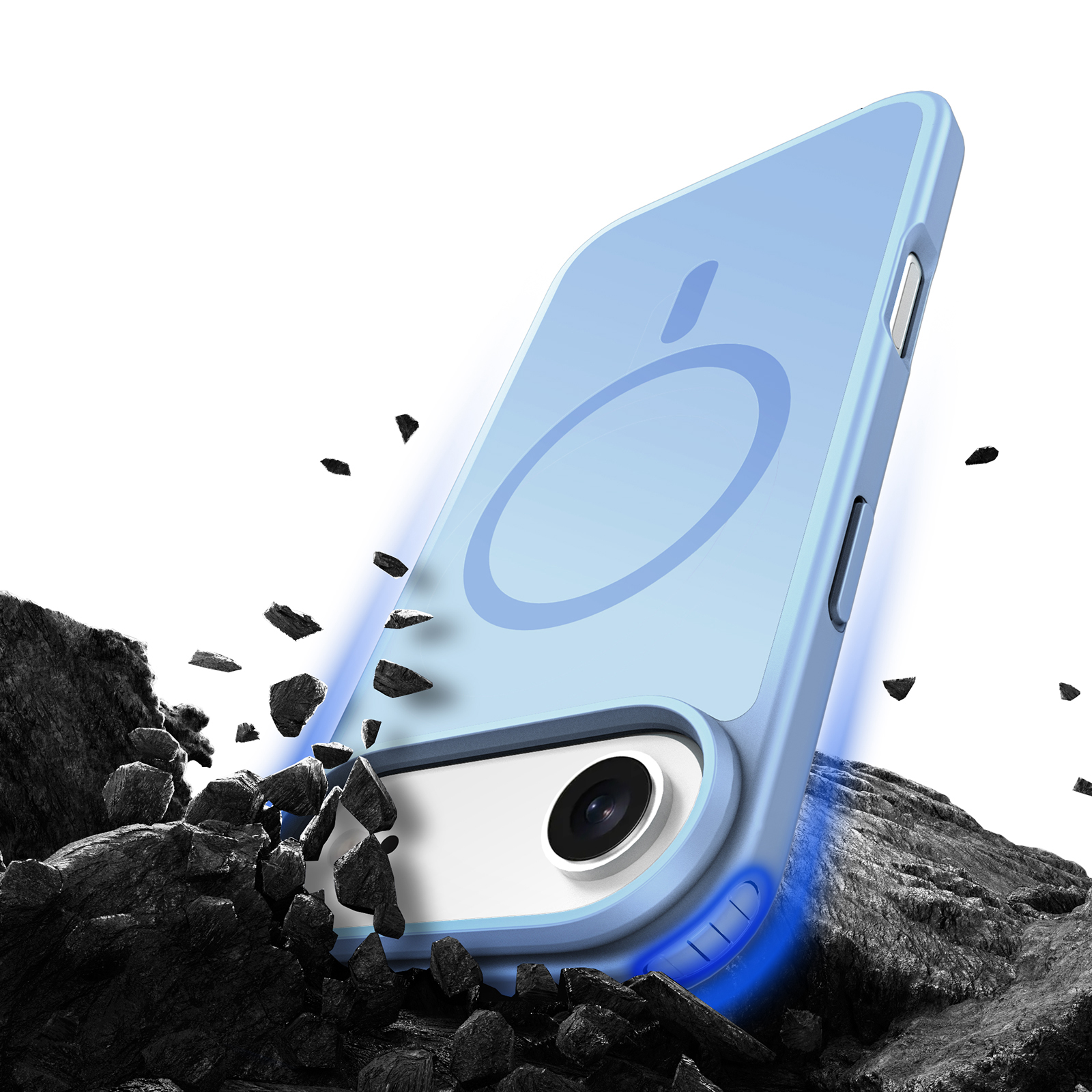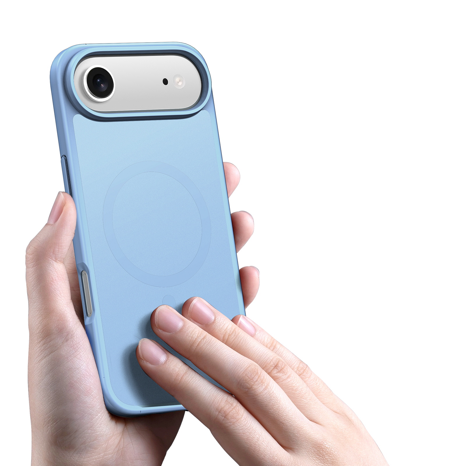 Матовый прозрачный чехол светло-синего цвета (Light Blue) с поддержкой беспроводной зарядки MagSage от Dux Ducis серии Yind Series Case для смартфона iPhone Air изготавливается из экологичных материалов путем высокоточного литья под давление с высокой температурой.