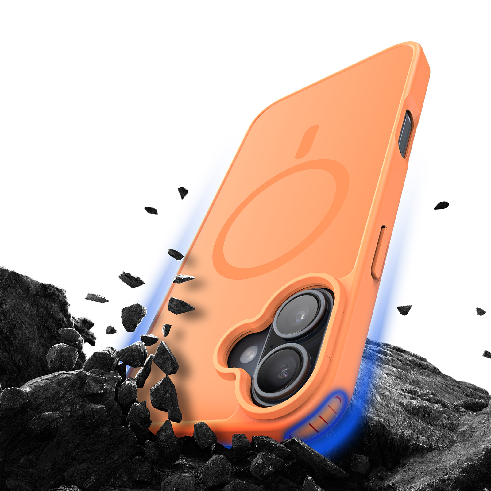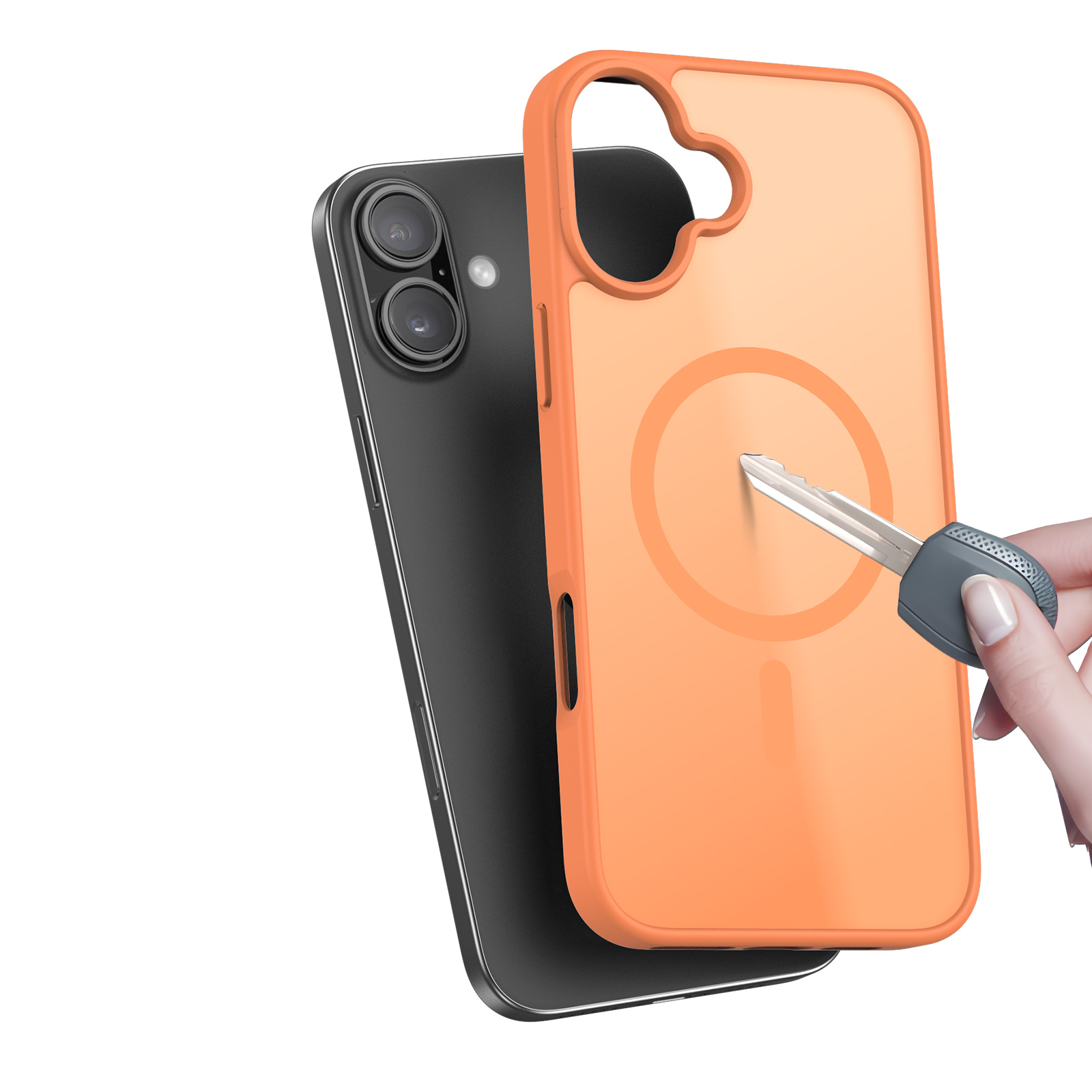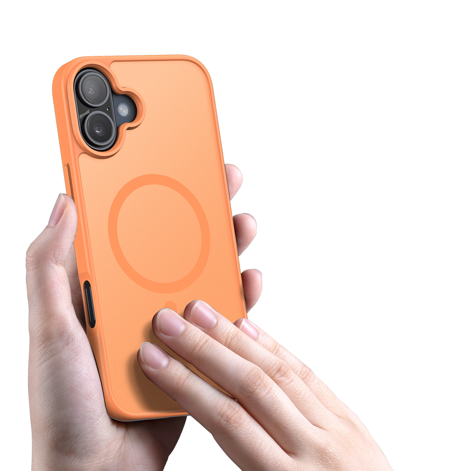 Матовый прозрачный чехол оранжевого цвета с поддержкой беспроводной зарядки MagSage от Dux Ducis серии Yind Series Case для смартфона iPhone 17 изготавливается из экологичных материалов путем высокоточного литья под давление с высокой температурой.