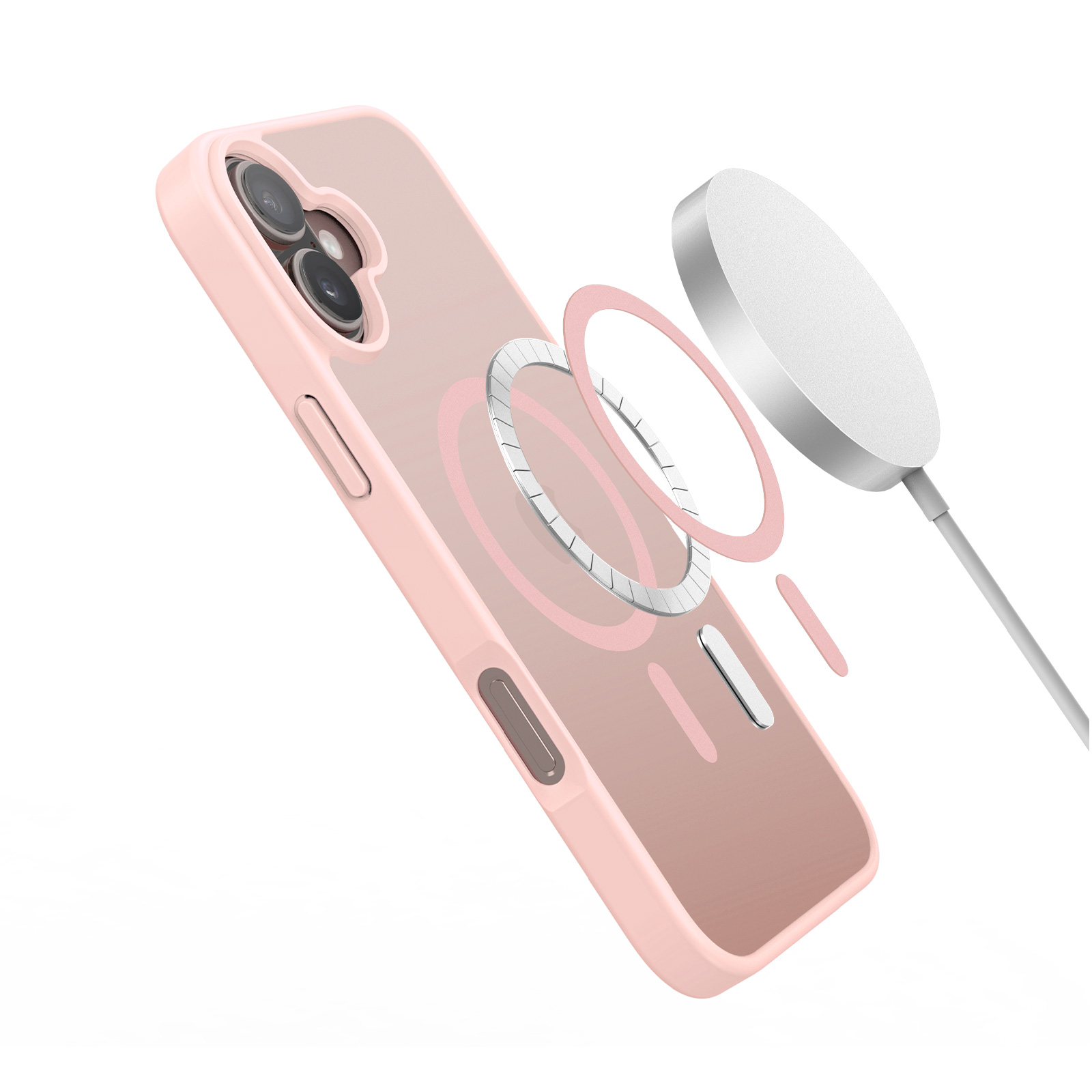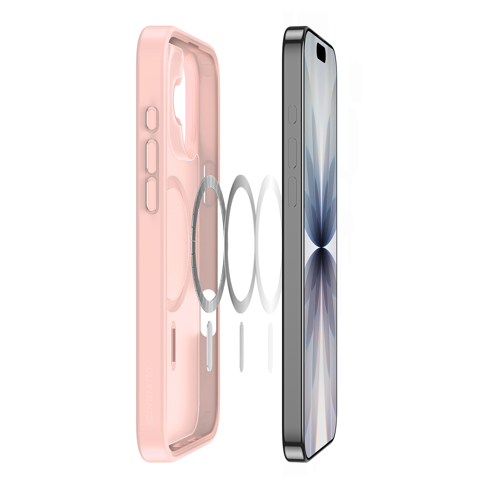 Матовый прозрачный чехол светло-розового цвета (Light Pink) с поддержкой беспроводной зарядки MagSage от Dux Ducis серии Yind Series Case для смартфона iPhone 17 изготавливается из экологичных материалов путем высокоточного литья под давление с высокой температурой.