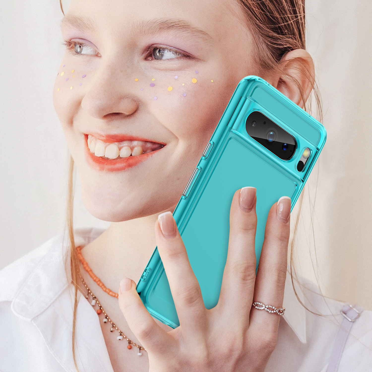 Противоударный чехол бирюзового цвета с усиленными боковыми рамками для дисплея на телефон Google Pixel 8 Pro от Caseport, серия Fusion