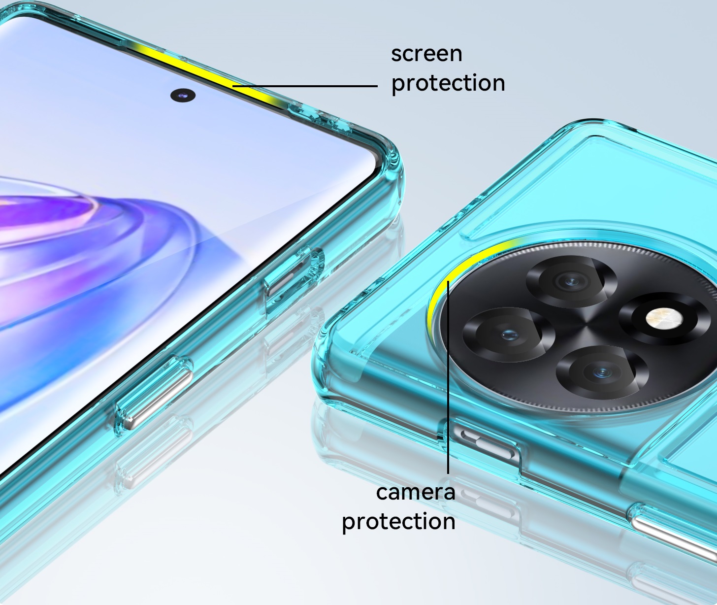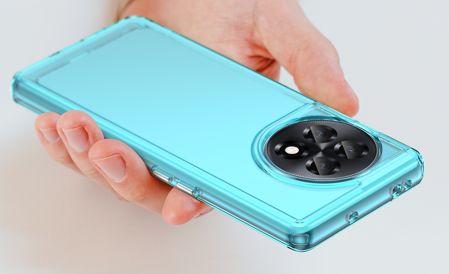 Мягкий противоударный чехол бирюзового цвета с усиленными боковыми рамками для дисплея на телефон OnePlus Ace 2 и 11R от Caseport, серия Fusion