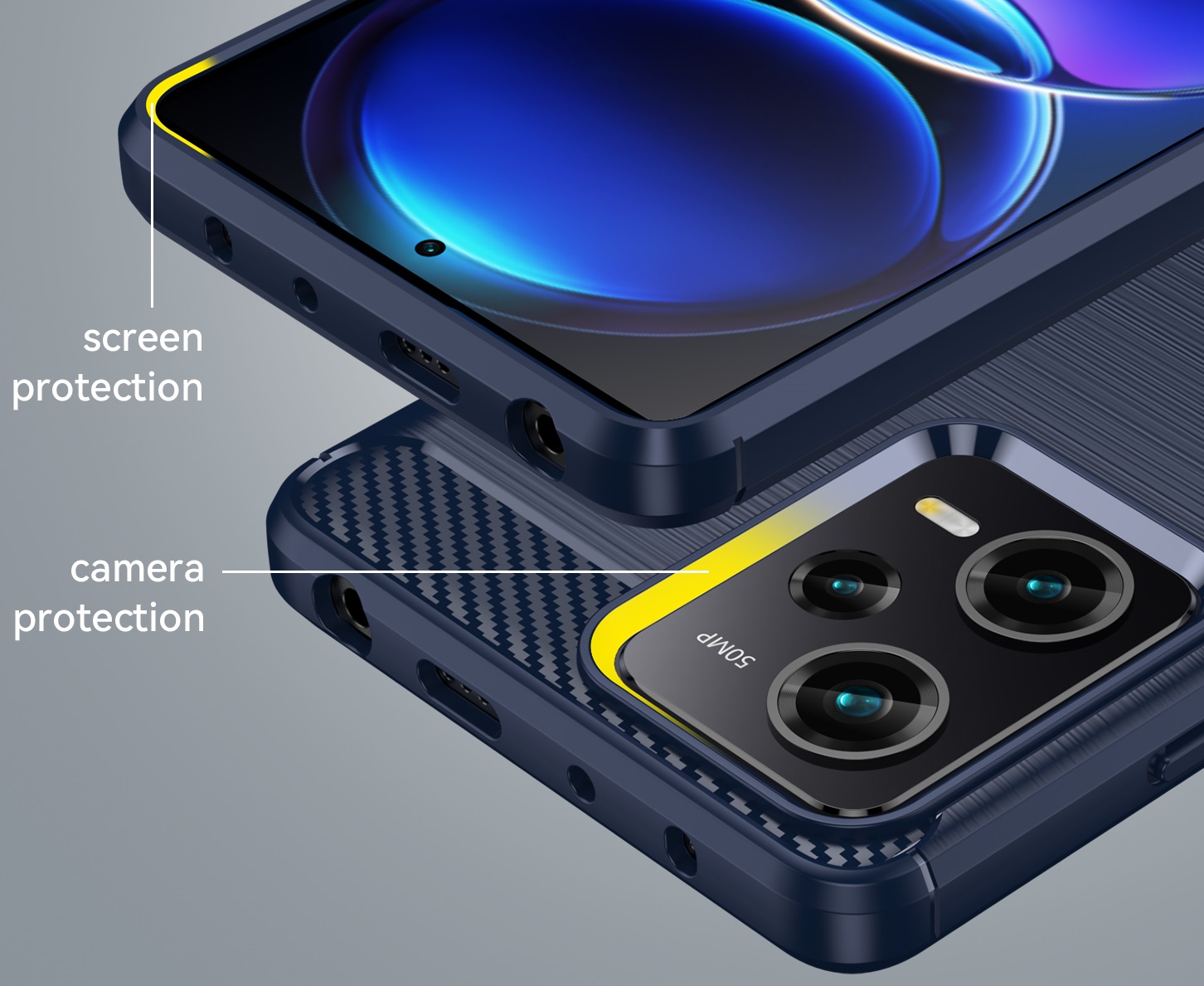 Мягкий чехол-бампер синего цвета с вставками под карбон для телефона Xiaomi Redmi Note 12 Pro и POCO X5 Pro 5G года от Caseport, серия Carbon