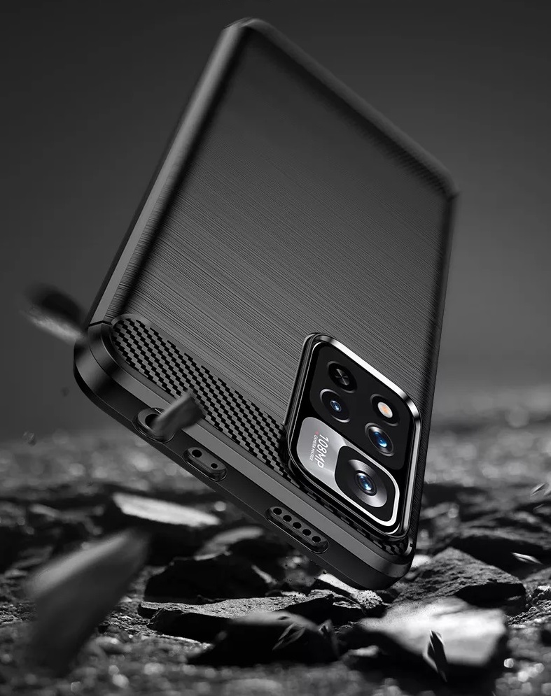 Мягкий бампер чехол накладка черного цвета на телефон Xiaomi Poco X4 NFC 5G от Caseport, серия Carbon