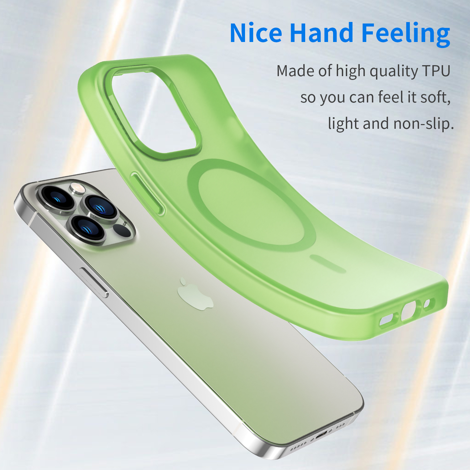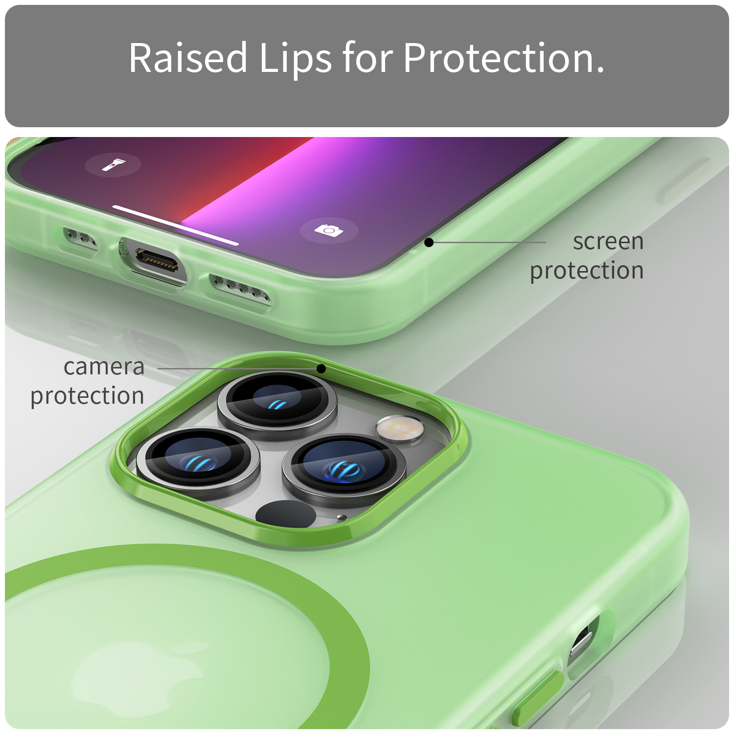 Защитный противоударный чехол с вставками ярко-зеленого цвета и поддержкой MagSafe на телефон iPhone 13 Pro Max от Caseport, серия Frosted Magnetic