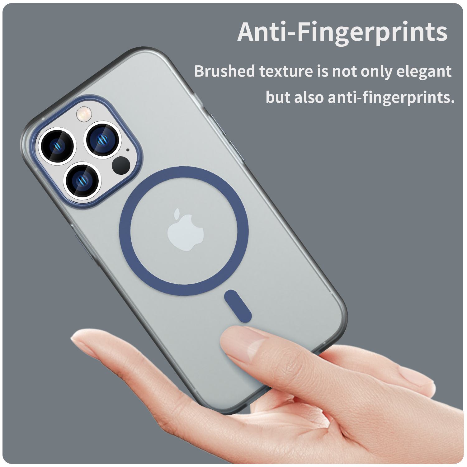 Защитный противоударный чехол с вставками темно-синего цвета и поддержкой MagSafe на телефон iPhone 13 Pro от Caseport, серия Frosted Magnetic