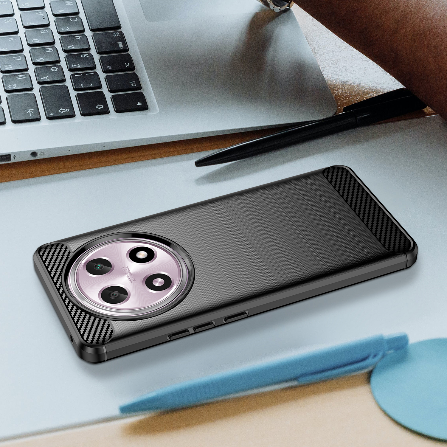 Чехол защитный черного цвета в стиле карбон на телефон OPPO A2 Pro от Caseport, серия Carbon