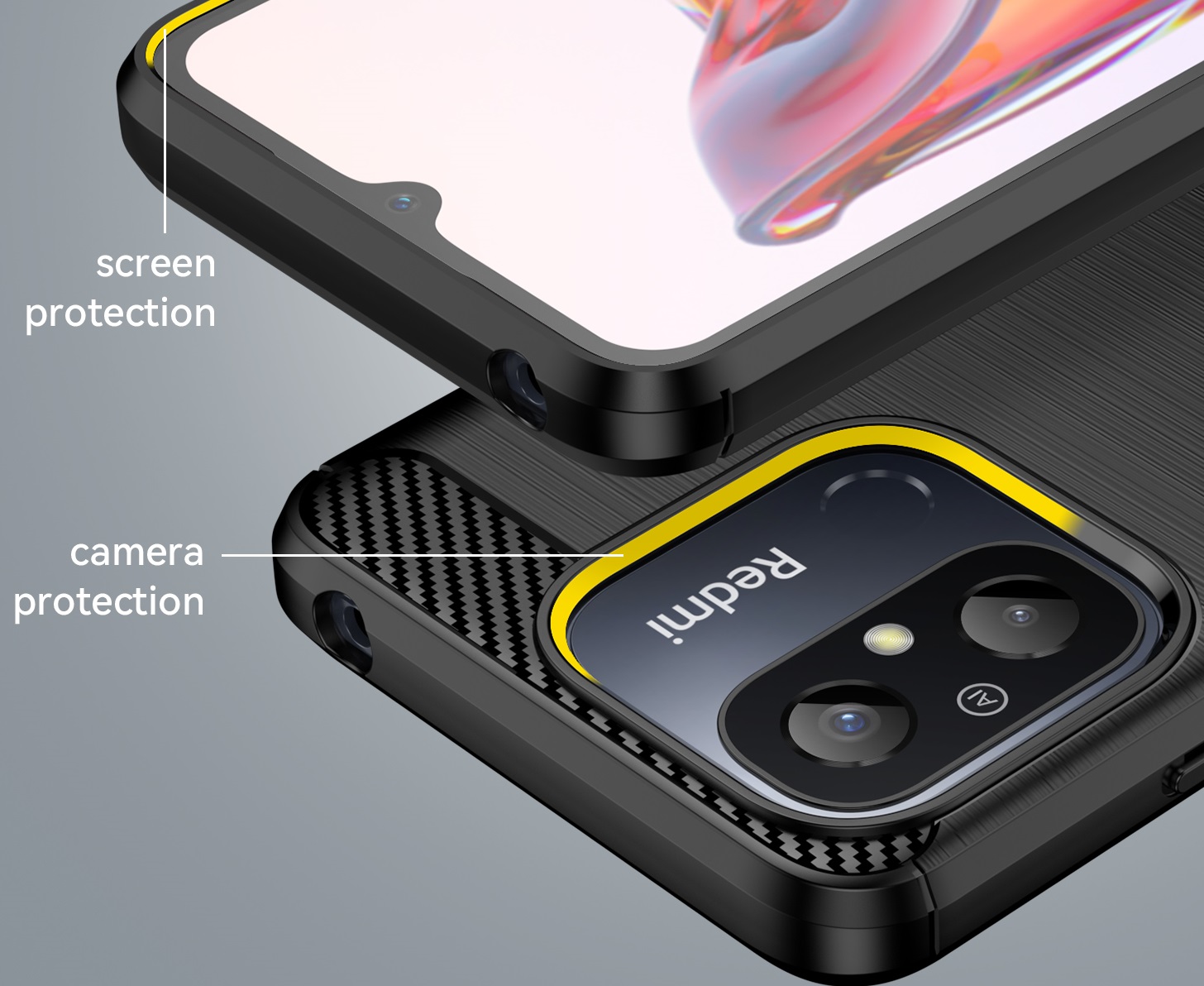 Чехол защитный чехол черного цвета на телефон Xiaomi Redmi 12C от Caseport, серия Carbon