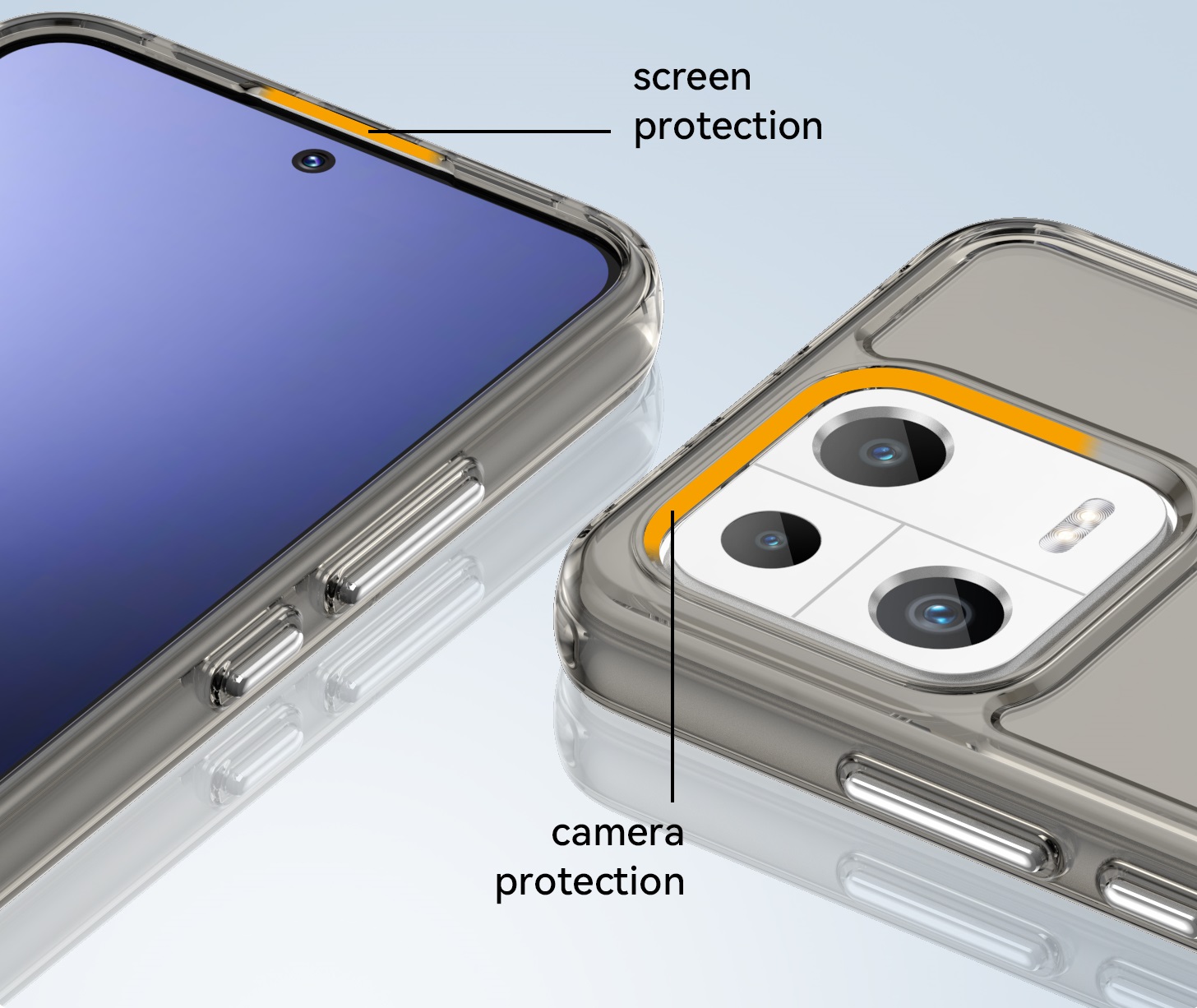 Специальные бортики на чехле приподнимают смартфон, не давая соприкасаться экрану и камере с плоскими поверхностями.