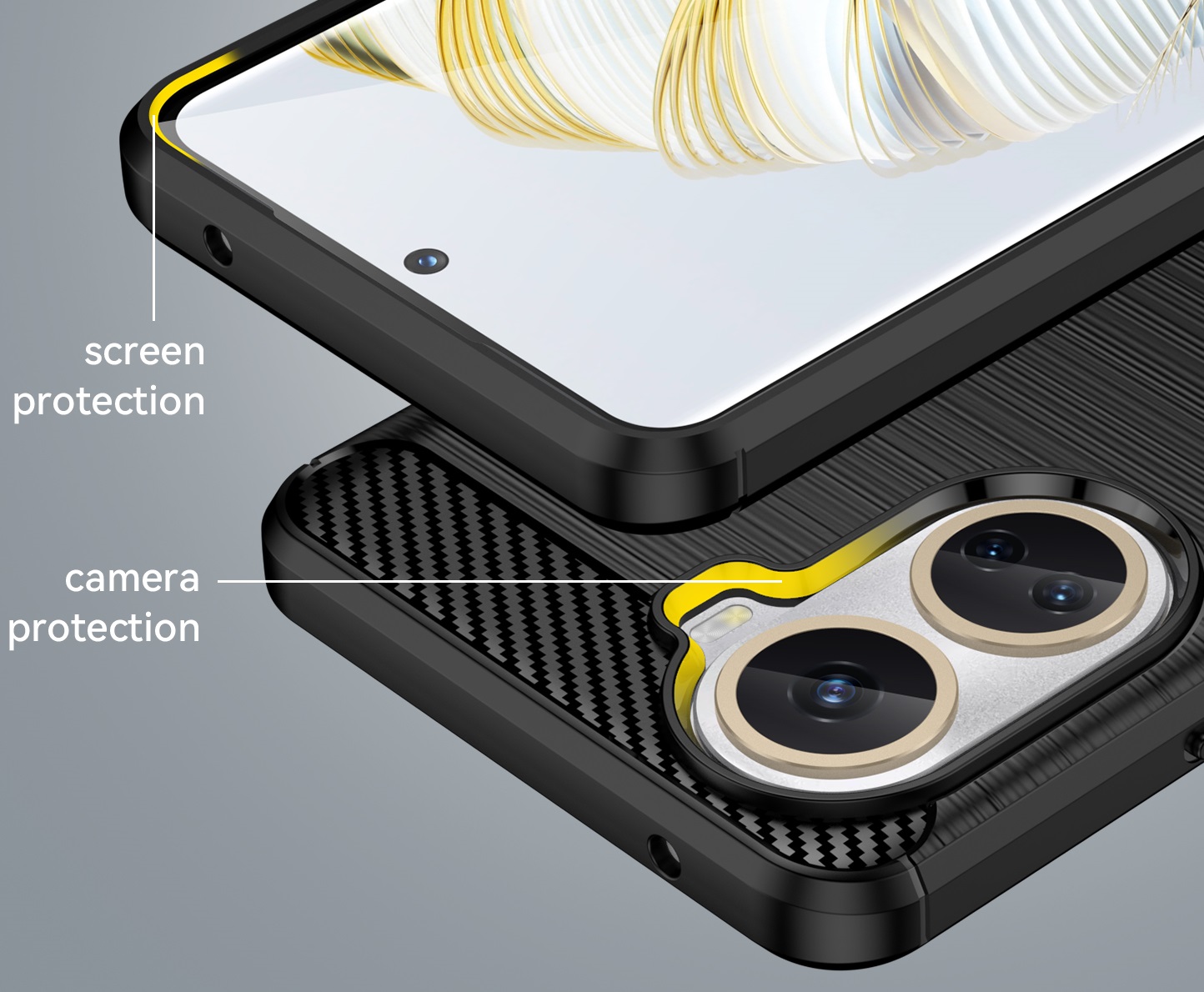 Мягкий чехол-бампер черного цвета с вставками "под карбон" для телефона Huawei Nova 10SE 4G от Caseport, серия Carbon