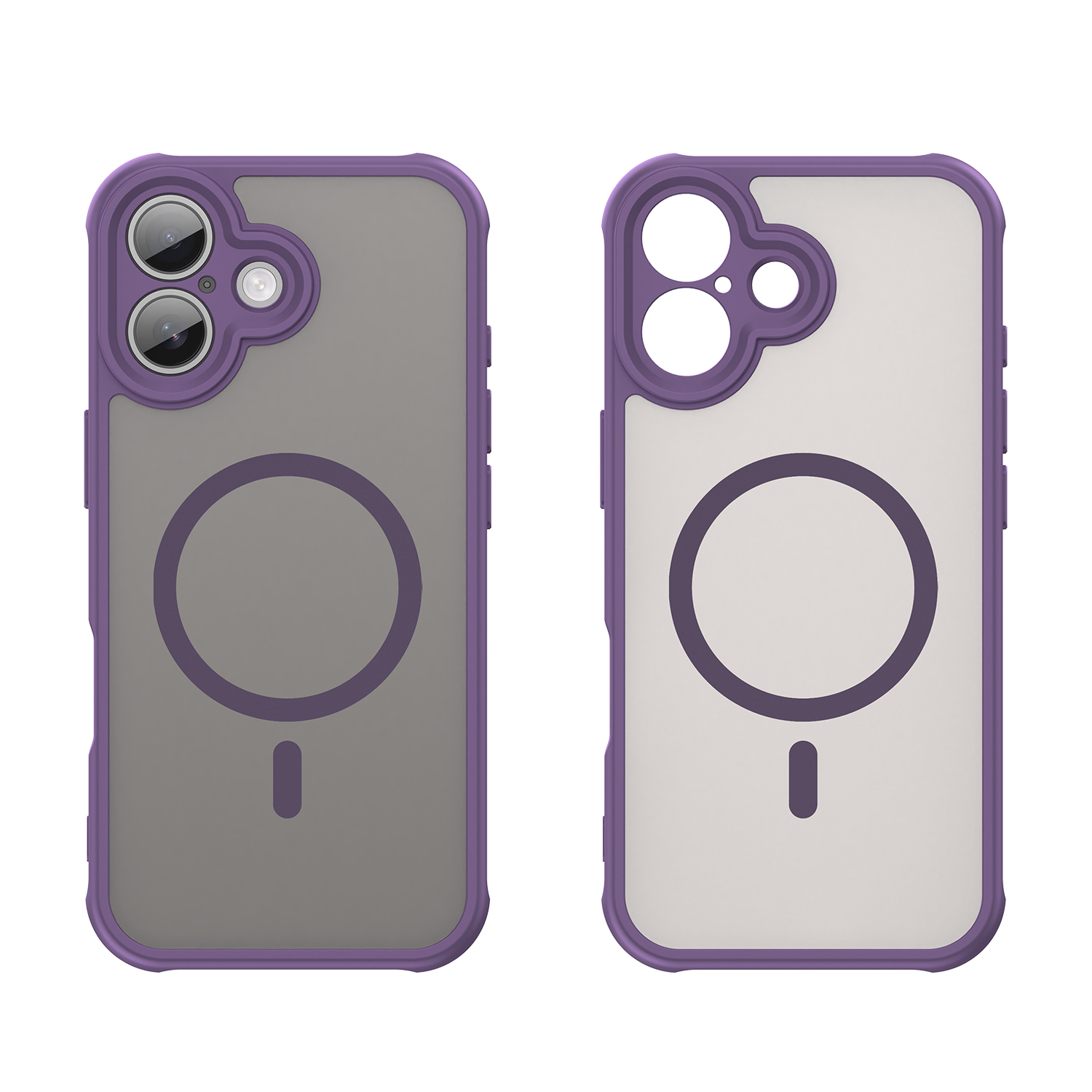Усиленный матовый чехол с поддержкой беспроводной зарядки MagSage для смартфона iPhone 17 изготавливается из экологичных материалов путем высокоточного литья под давление с высокой температурой. Задняя стенка матовая, боковые рамки мягкие защитные фиолетового цвета.