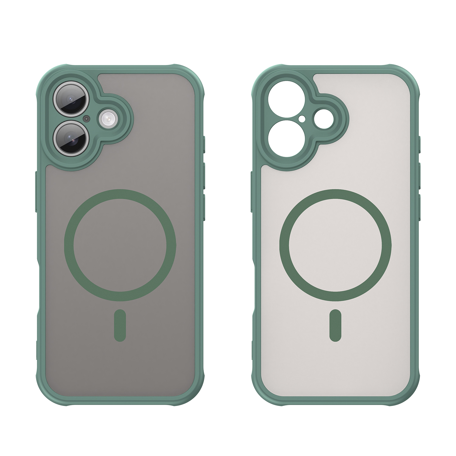 Усиленный матовый чехол с поддержкой беспроводной зарядки MagSage для смартфона iPhone 17 изготавливается из экологичных материалов путем высокоточного литья под давление с высокой температурой. Задняя стенка матовая, боковые рамки мягкие защитные зеленого цвета.