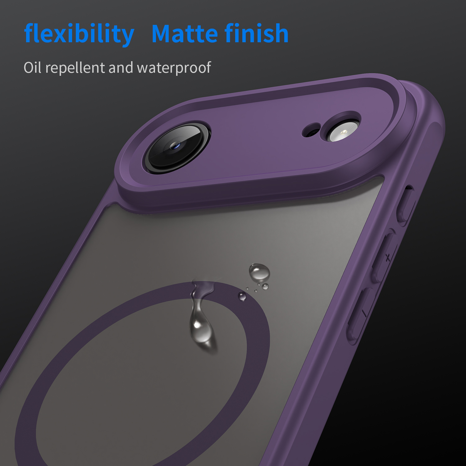 Усиленный матовый чехол с поддержкой беспроводной зарядки MagSage для смартфона iPhone Air изготавливается из экологичных материалов путем высокоточного литья под давление с высокой температурой. Задняя стенка матовая, боковые рамки мягкие защитные фиолетового цвета.