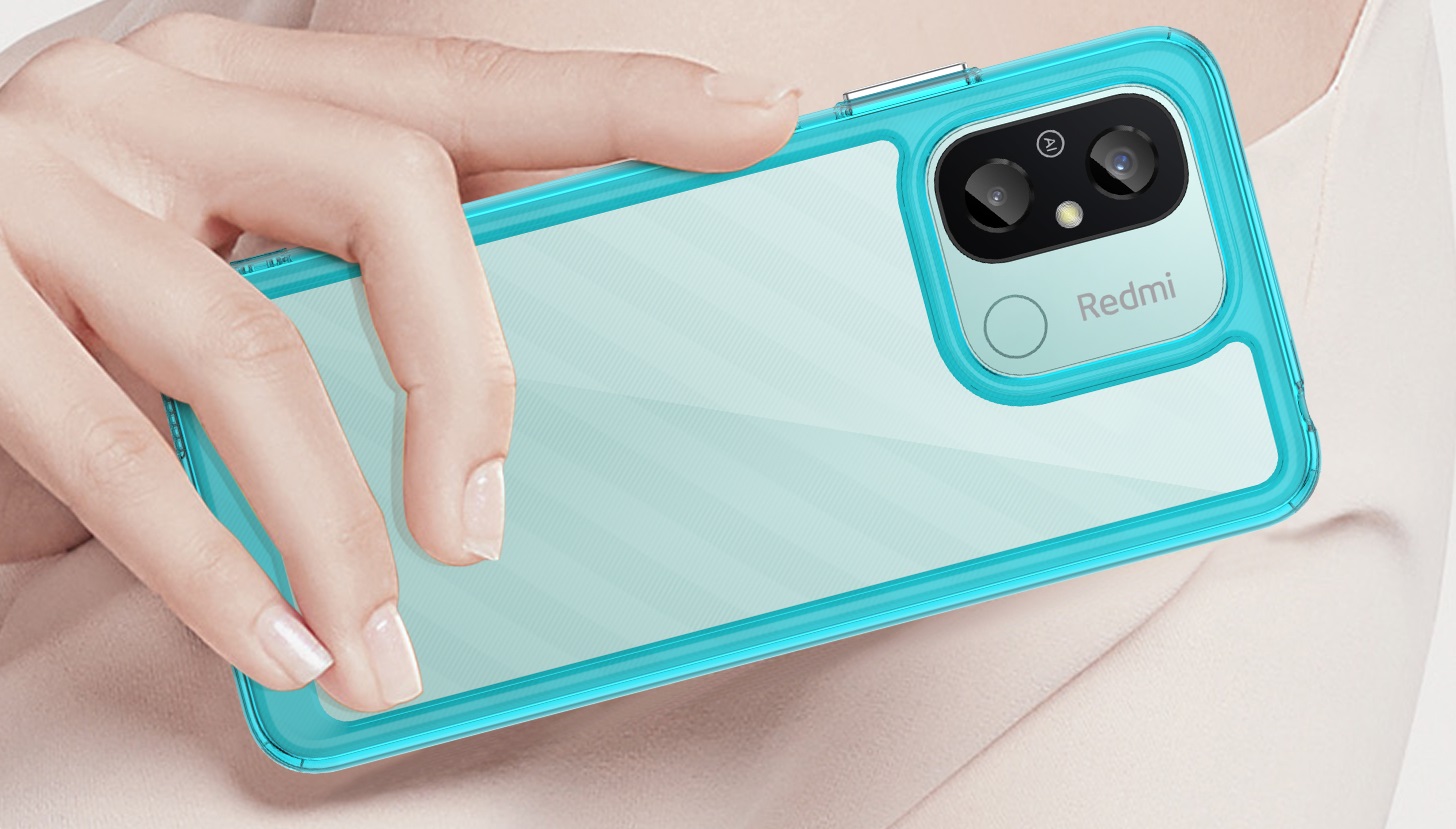 Защитный, противоударный чехол с усиленными мягкими боковыми рамками бирюзового цвета для дисплея на телефон Xiaomi Redmi 12C от Caseport, серия Fusion