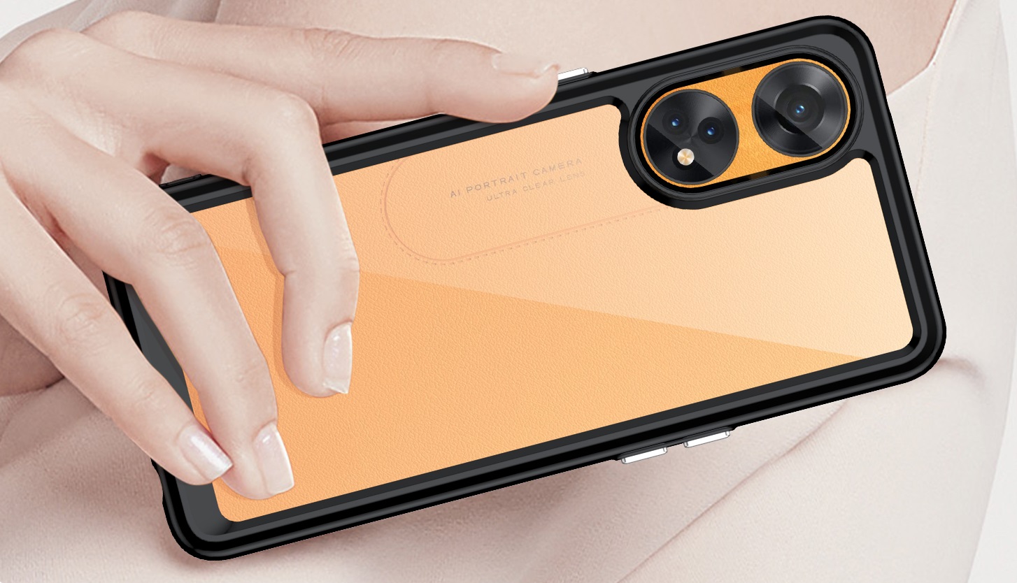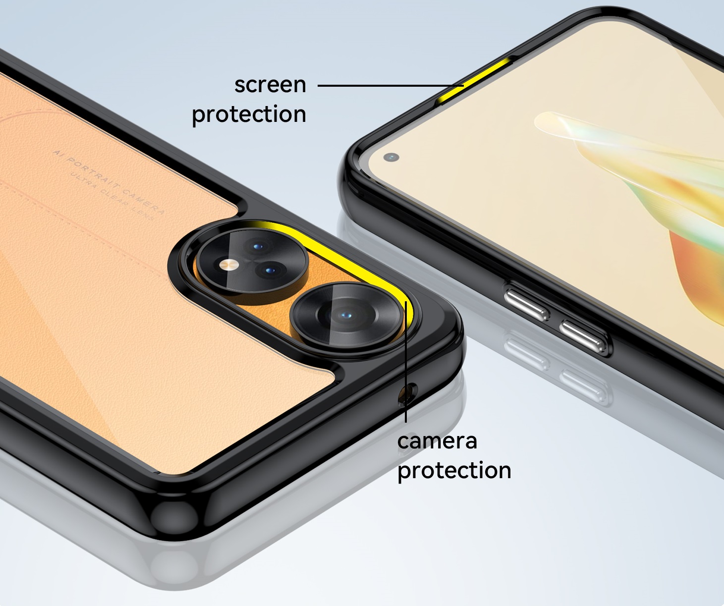 Защитный, противоударный чехол с усиленными боковыми рамками черного цвета для дисплея на телефон OPPO Reno8 T 4G от Caseport, серия Fusion
