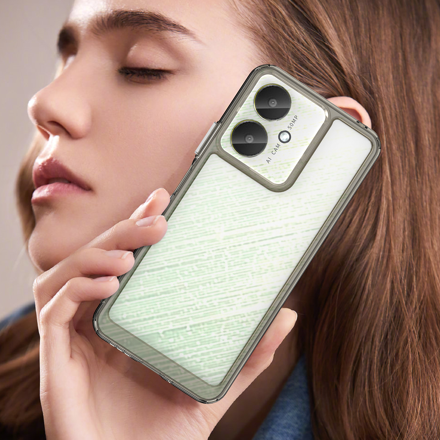 Защитный противоударный чехол с усиленными боковыми рамками серого цвета для дисплея на телефон Xiaomi Redmi 13C от Caseport, серия Fusion