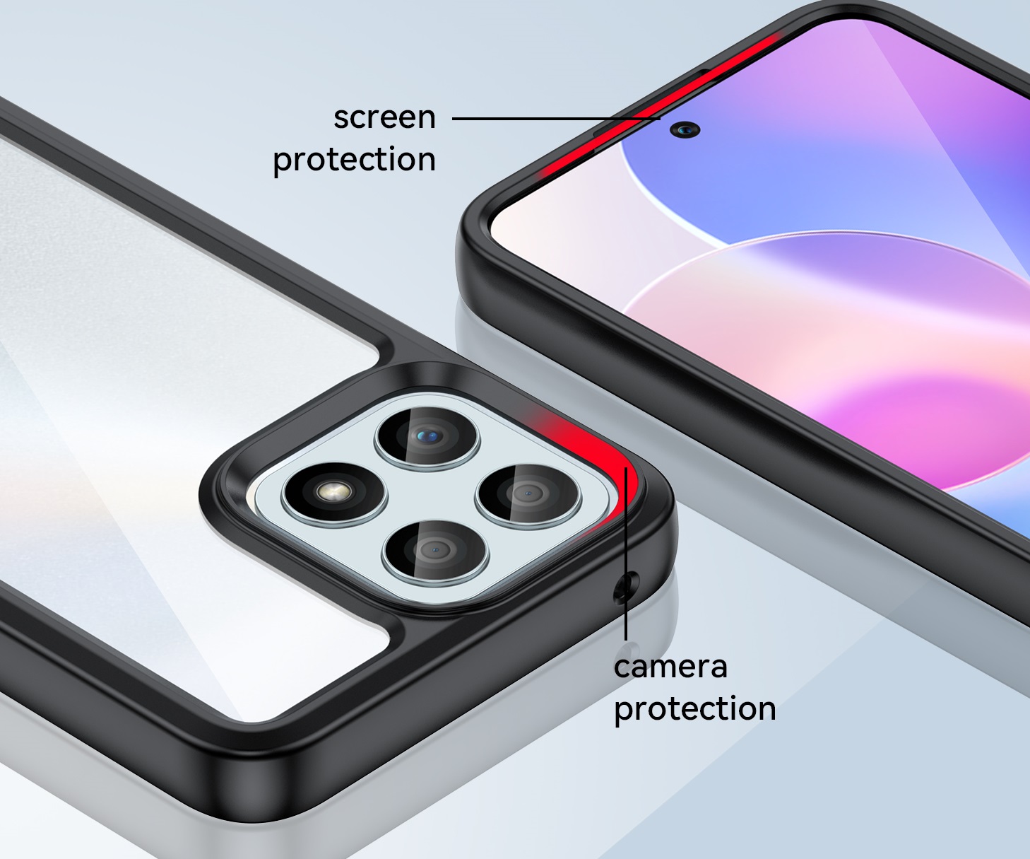 Специальные бортики на чехле приподнимают смартфон, не давая соприкасаться экрану и камере с плоскими поверхностями.