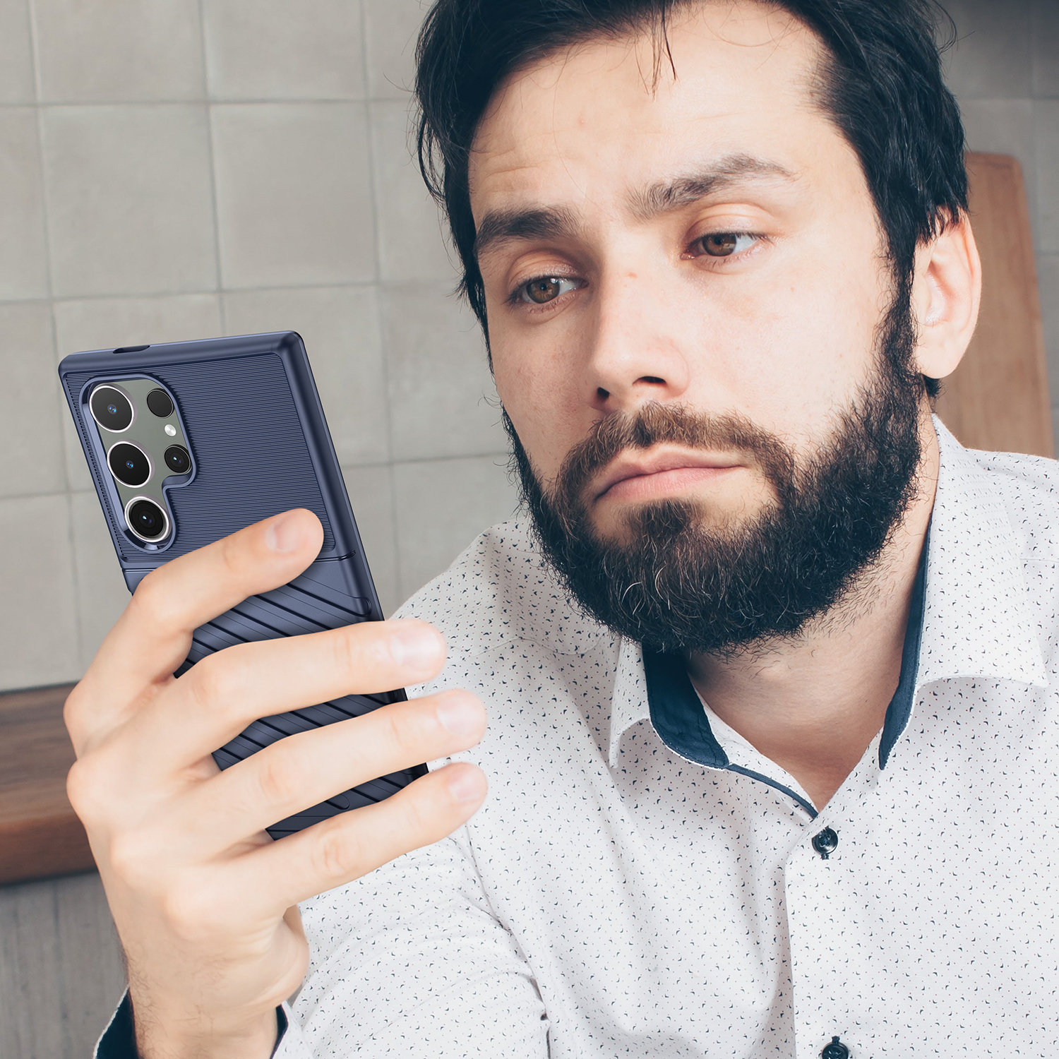 Защитный чехол бампер синего цвета для телефона Samsung Galaxy S24 Ultra от Caseport, серия Onyx