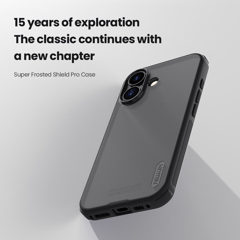 Защитный чехол тонированный прозрачный (Transparent black) от Nillkin серии Super Frosted Shield Pro для смартфона iPhone 17 с усиленными боковыми рамками по четырем углам, изготавливается из экологичных материалов PC и TPU путем высокоточного литья под давление с высокой температурой.