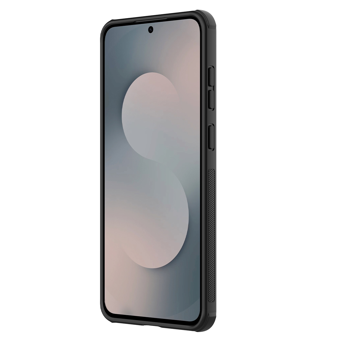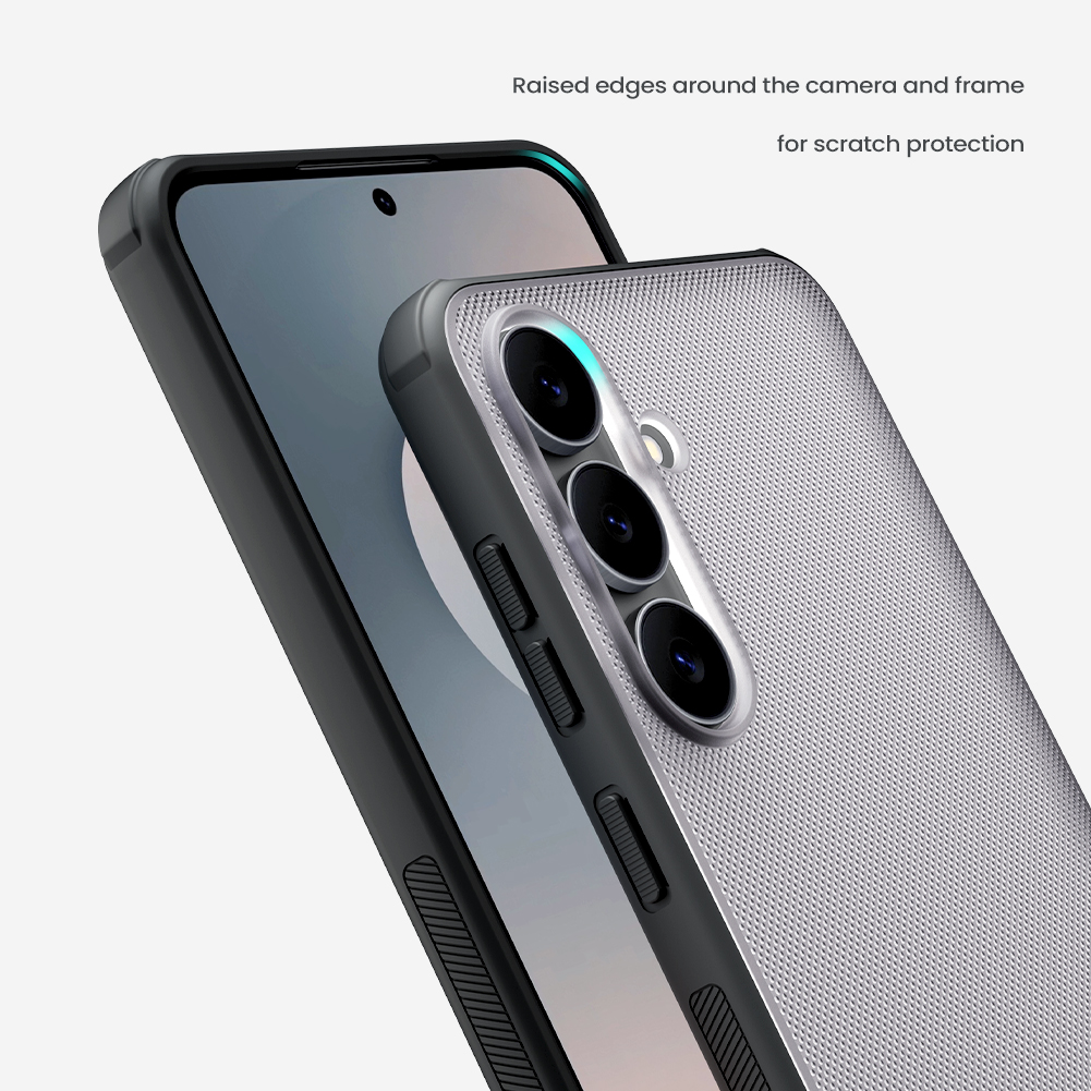 Защитный чехол тонированный прозрачный (Transparent black) от Nillkin серии Super Frosted Shield Pro для смартфона Samsung Galaxy S25 FE с усиленными боковыми рамками по четырем углам, изготавливается из экологичных материалов PC и TPU путем высокоточного литья под давление с высокой температурой.