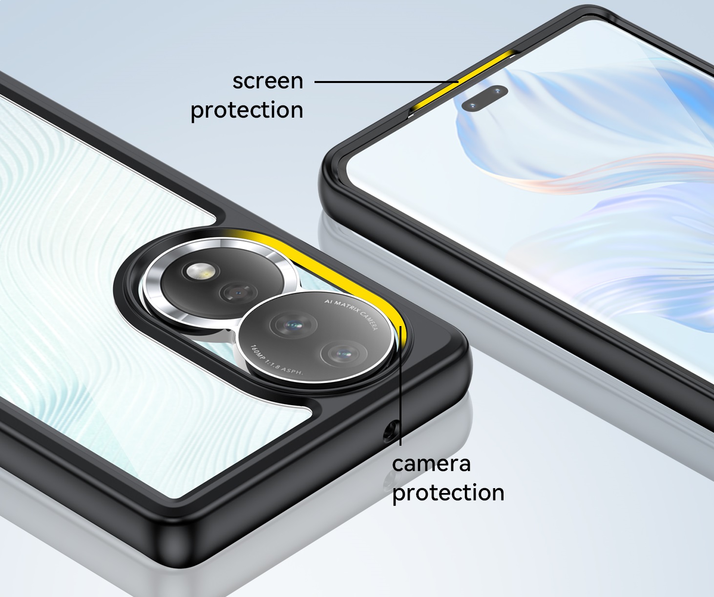 Защитный, противоударный чехол с усиленными черными боковыми рамками для дисплея на телефон Huawei Honor 80 5G от Caseport, серия Fusion