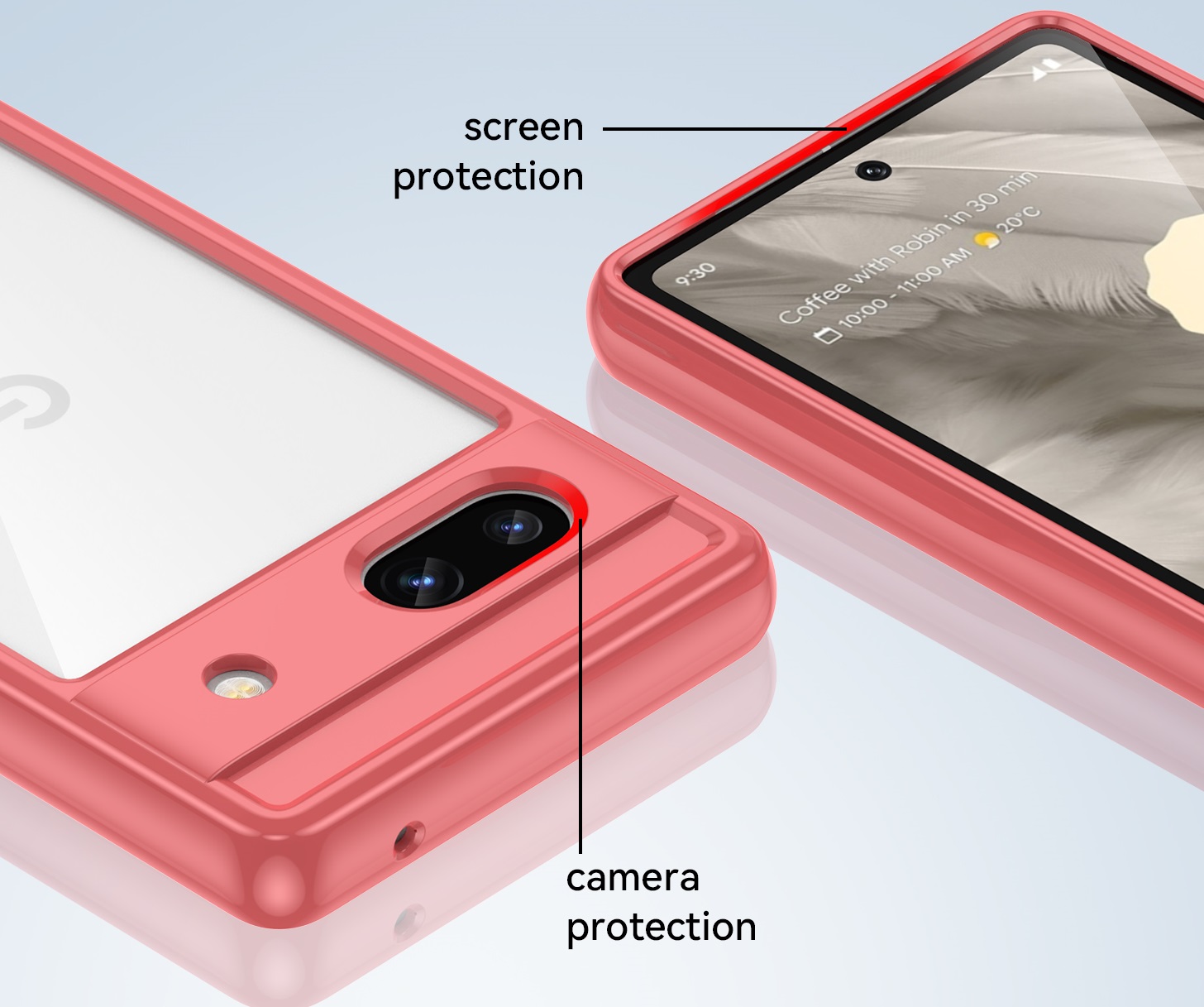 Защитный, противоударный чехол с усиленными боковыми рамками красного цвета для дисплея на телефон Google Pixel 7A от Caseport, серия Fusion