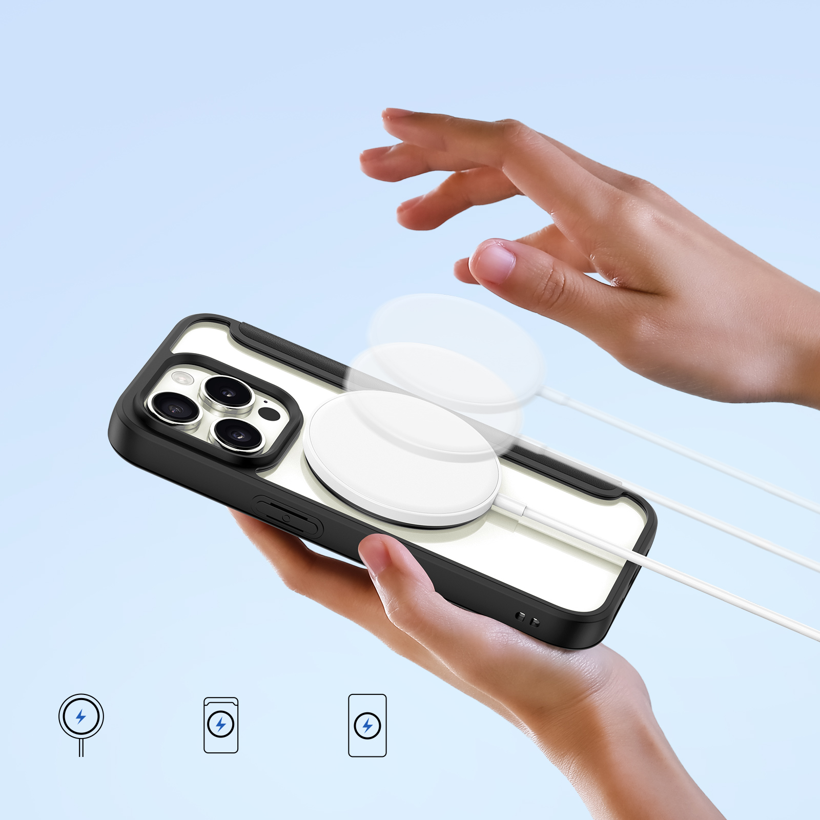 Чехол-книжка с MagSafe для iPhone 15 Pro, он совместим с зарядными устройствами MagSafe от Apple, кошельками, внешними аккумуляторами. Когда пришло время зарядить iPhone, просто оставьте чехол на iPhone и прикрепите к зарядному устройству MagSafe.