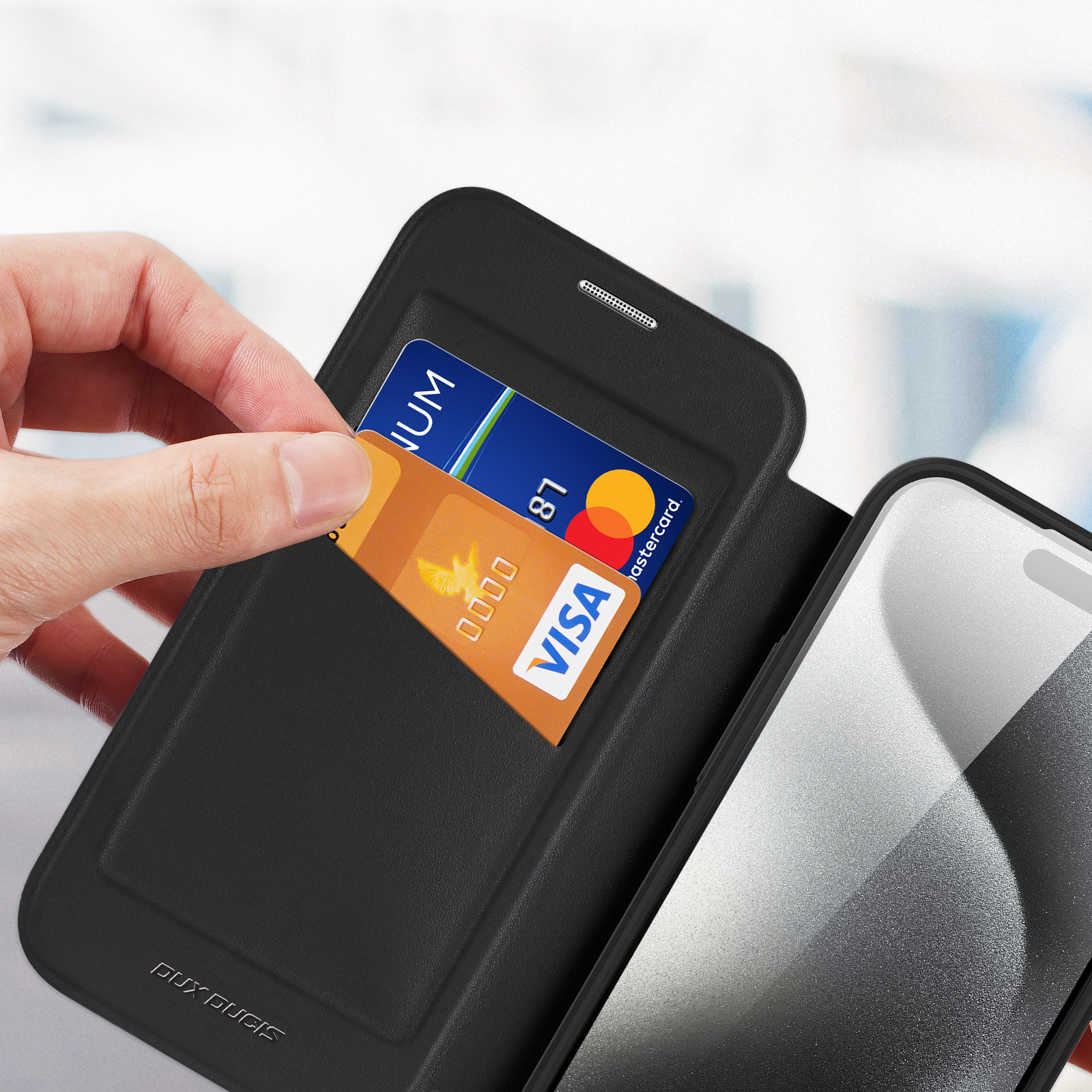Чехол-книжка черного цвета серии Skin X Pro Series с MagSafe для iPhone 15 Pro от Dux Ducis.