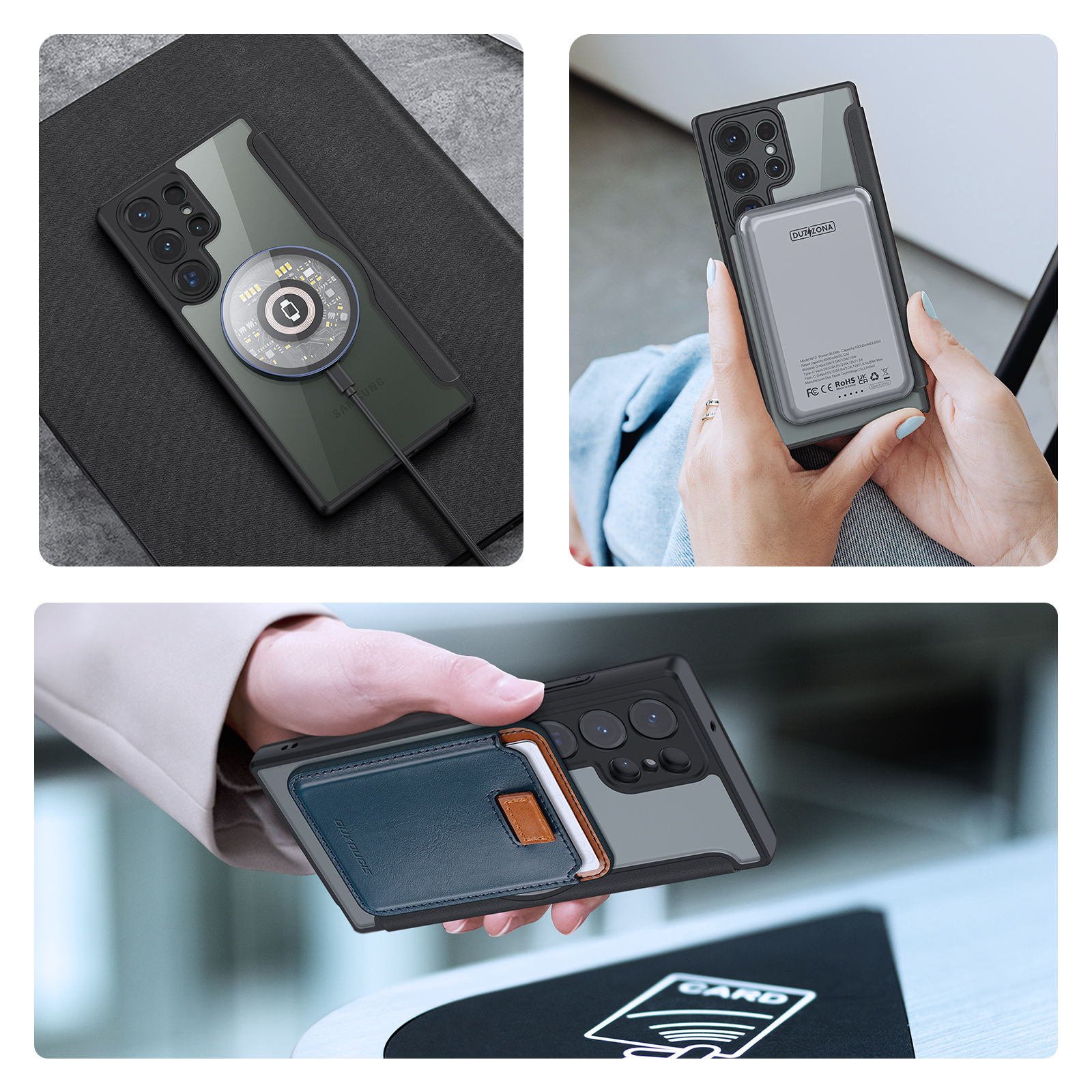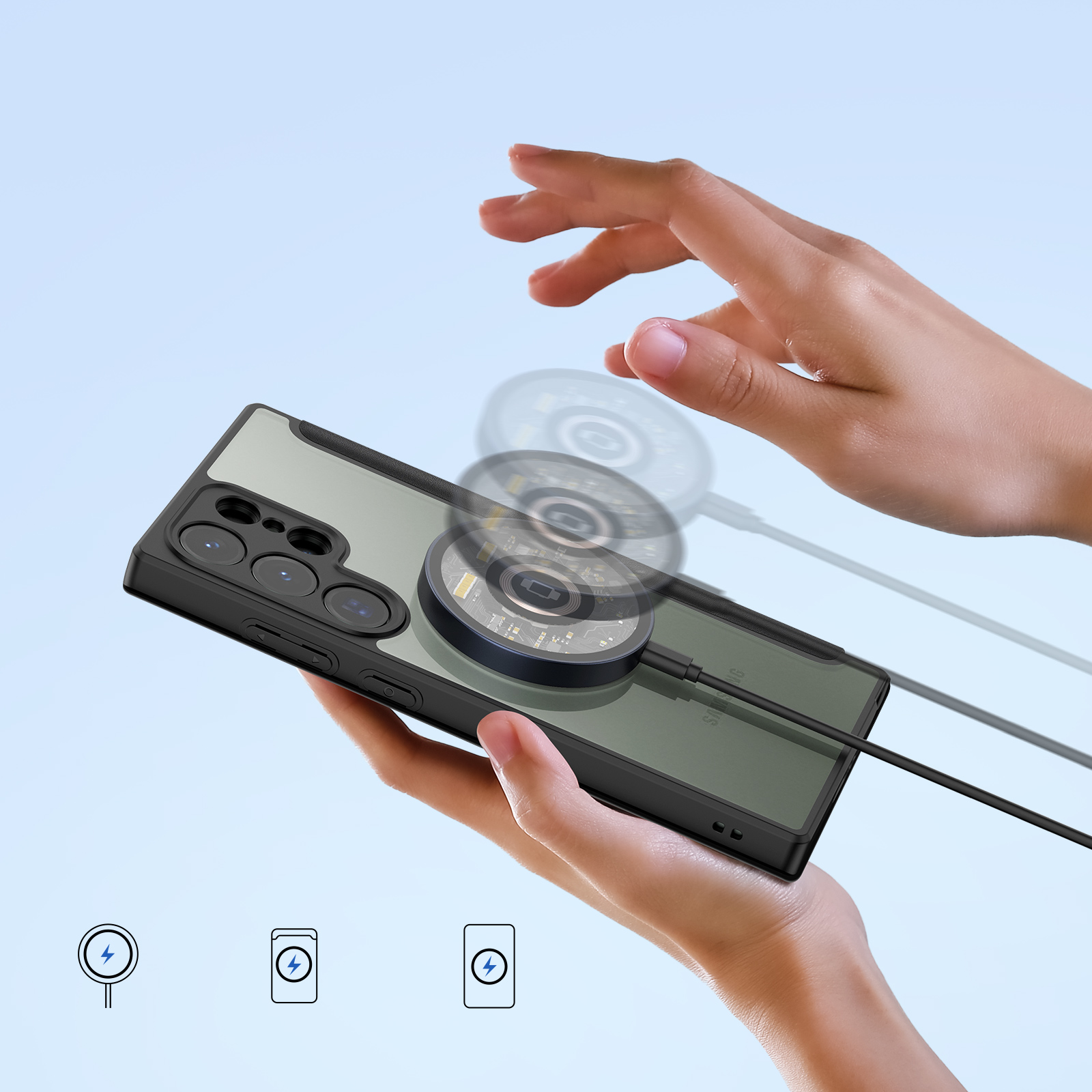Чехол-книжка с MagSafe для Samsung Galaxy S23 Ultra, он совместим с зарядными устройствами MagSafe, кошельками, внешними аккумуляторами. Когда пришло время зарядить cмартфон, просто оставьте чехол на Samsung и прикрепите его к зарядному устройству MagSafe.