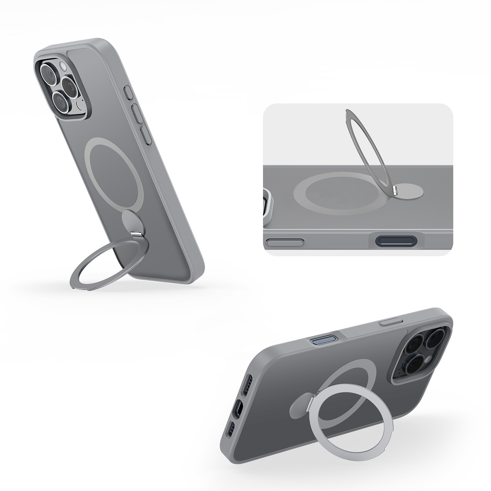 Матовый прозрачный чехол с рамками серого цвета и с поддержкой беспроводной зарядки MagSage от Dux Ducis серии Yind Series Case (версия с магнитной откидной подставкой) для смартфона iPhone 16 Pro Max изготавливается из экологичных материалов путем высокоточного литья под давление с высокой температурой.