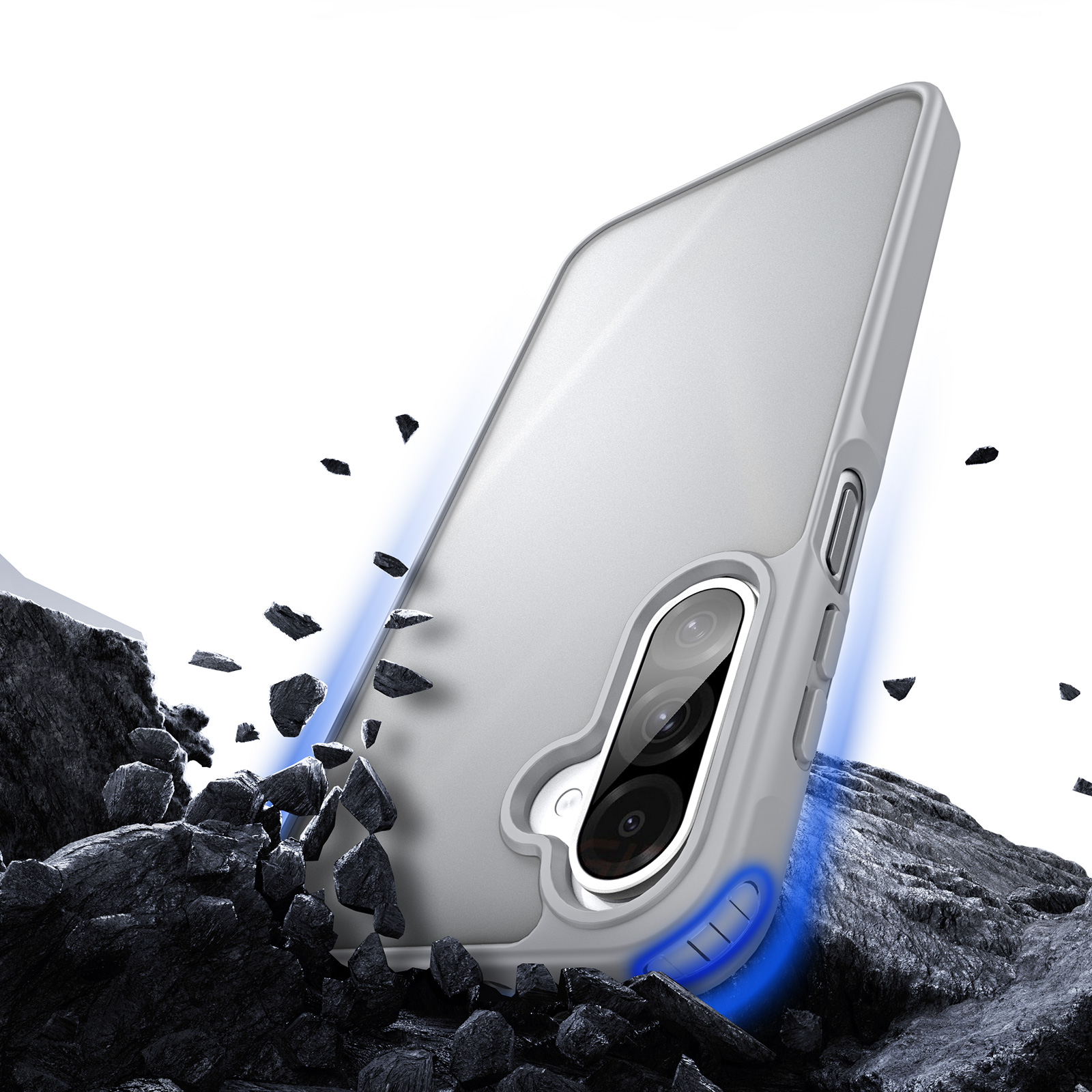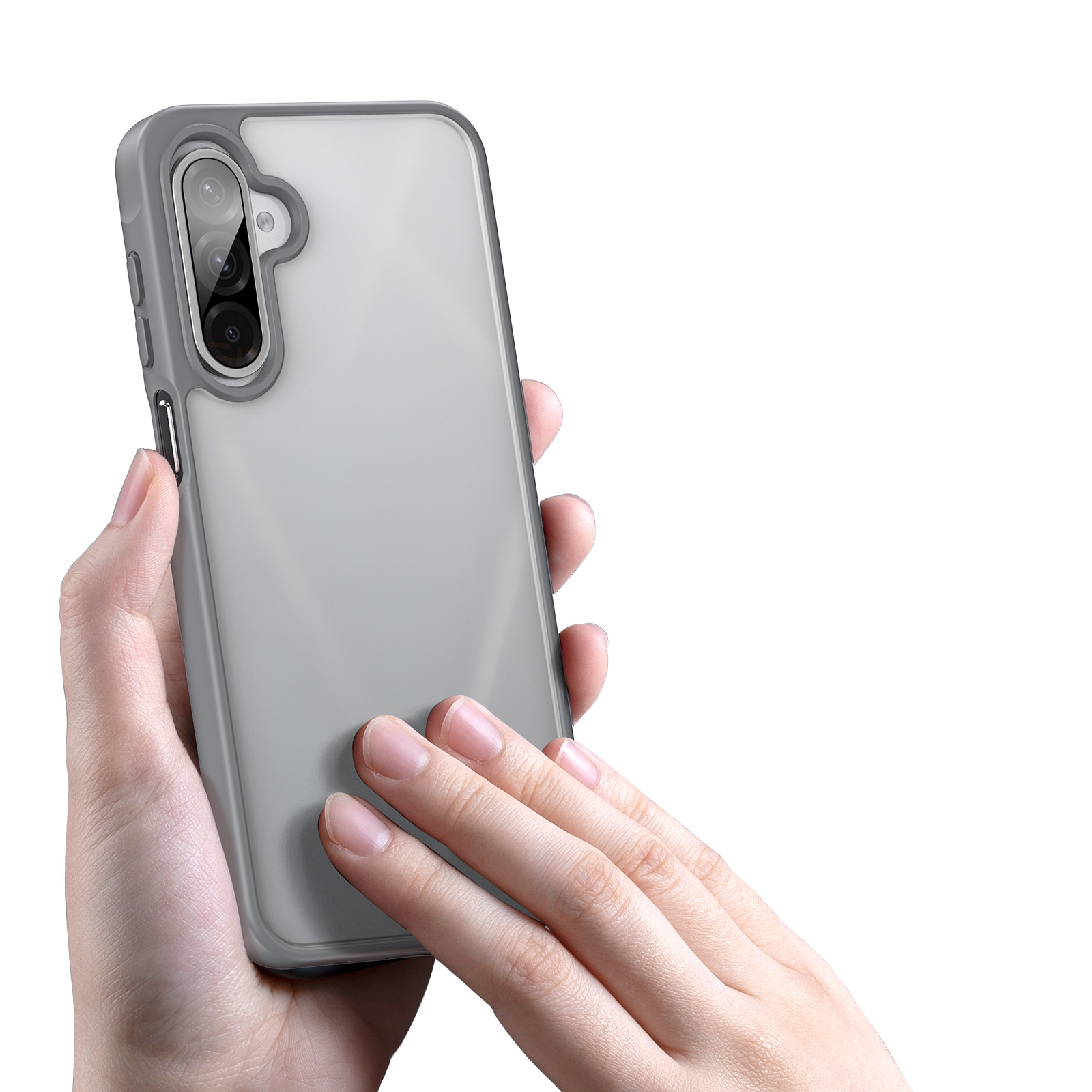 Матовый прозрачный чехол серого цвета от Dux Ducis серии Yind Series Case для смартфона Samsung Galaxy A26 5G изготавливается из экологичных материалов путем высокоточного литья под давление с высокой температурой.