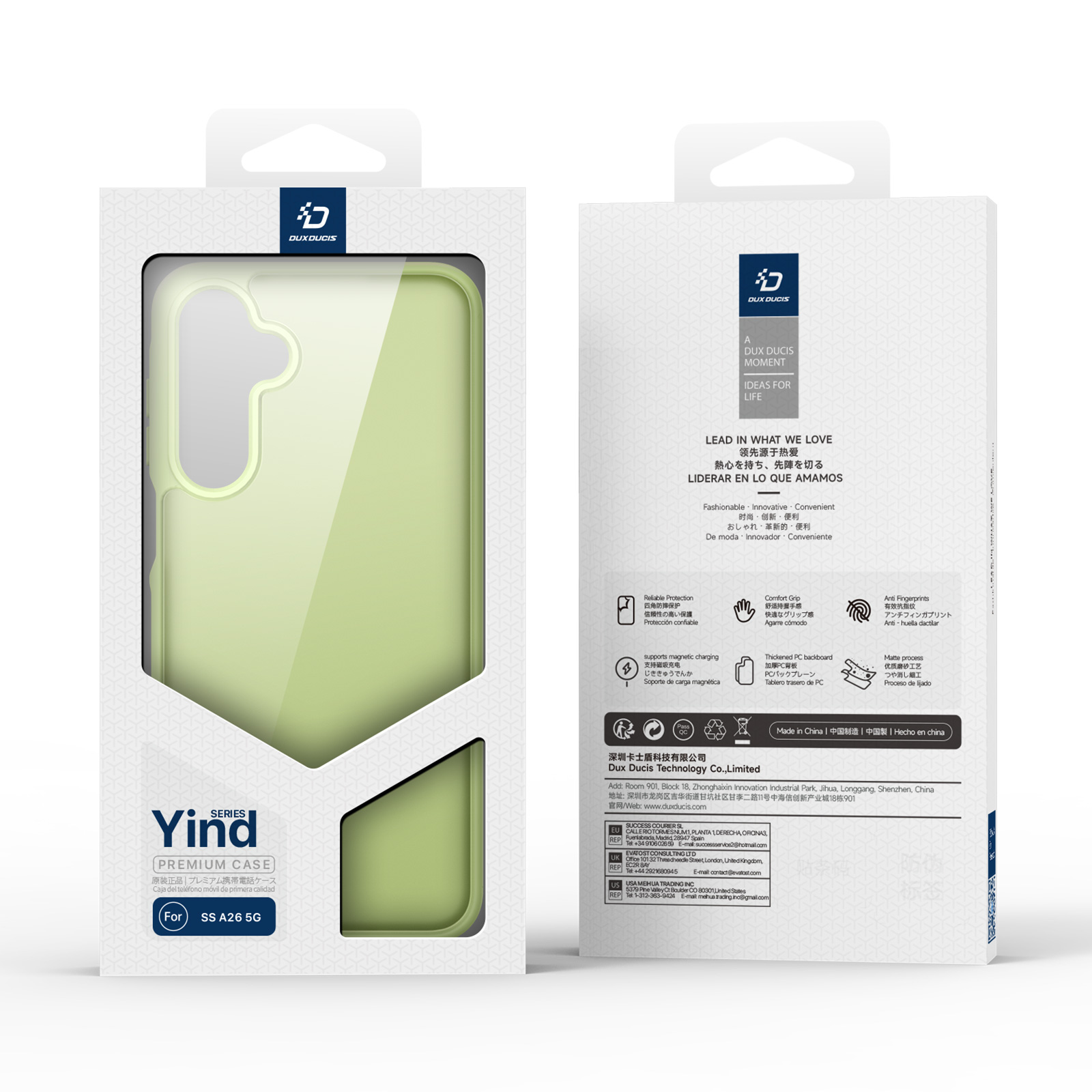 Матовый прозрачный чехол зеленого цвета (Lime Green) от Dux Ducis серии Yind Series Case для смартфона Samsung Galaxy A26 5G изготавливается из экологичных материалов путем высокоточного литья под давление с высокой температурой.