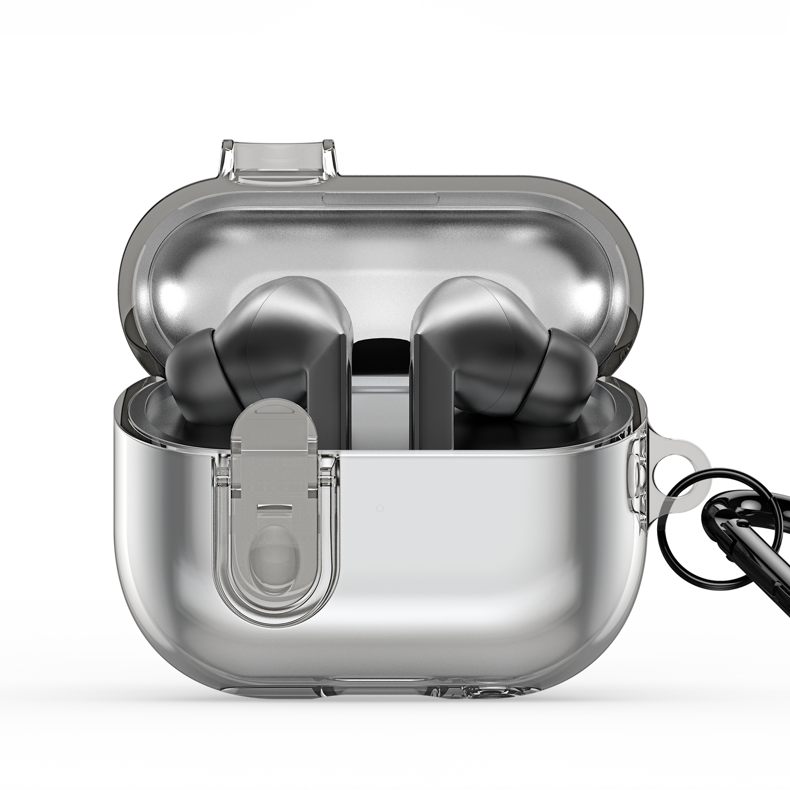 Прозрачный серый чехол для Samsung Buds 3 и Buds 3 Pro от Dux Ducis серии SECI Series Case выполнен из высококачественного плотного TPU + PC, обеспечивает плотное прилегание и надёжную защиту. Защитный чехол поддерживает проводную и беспроводную зарядку без снятия чехла Samsung Buds 3 и Buds 3 Pro. Виден передний светодиод зарядного кейса.