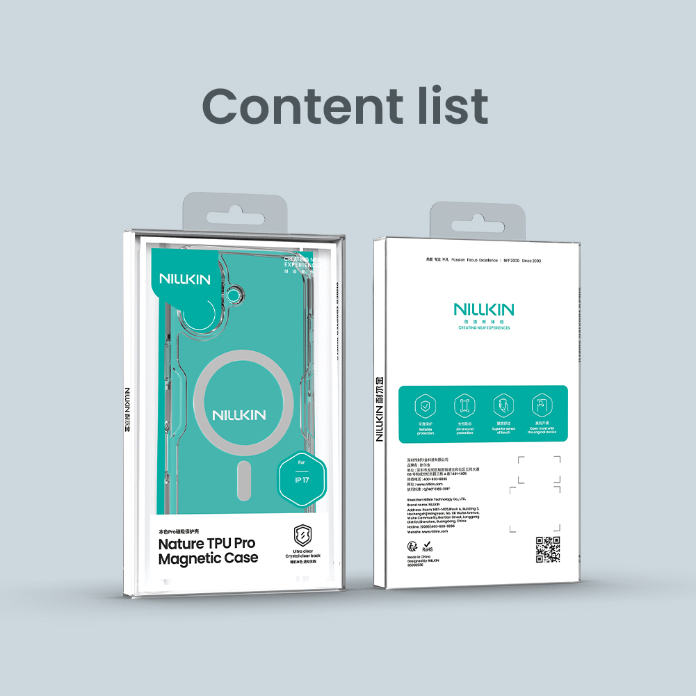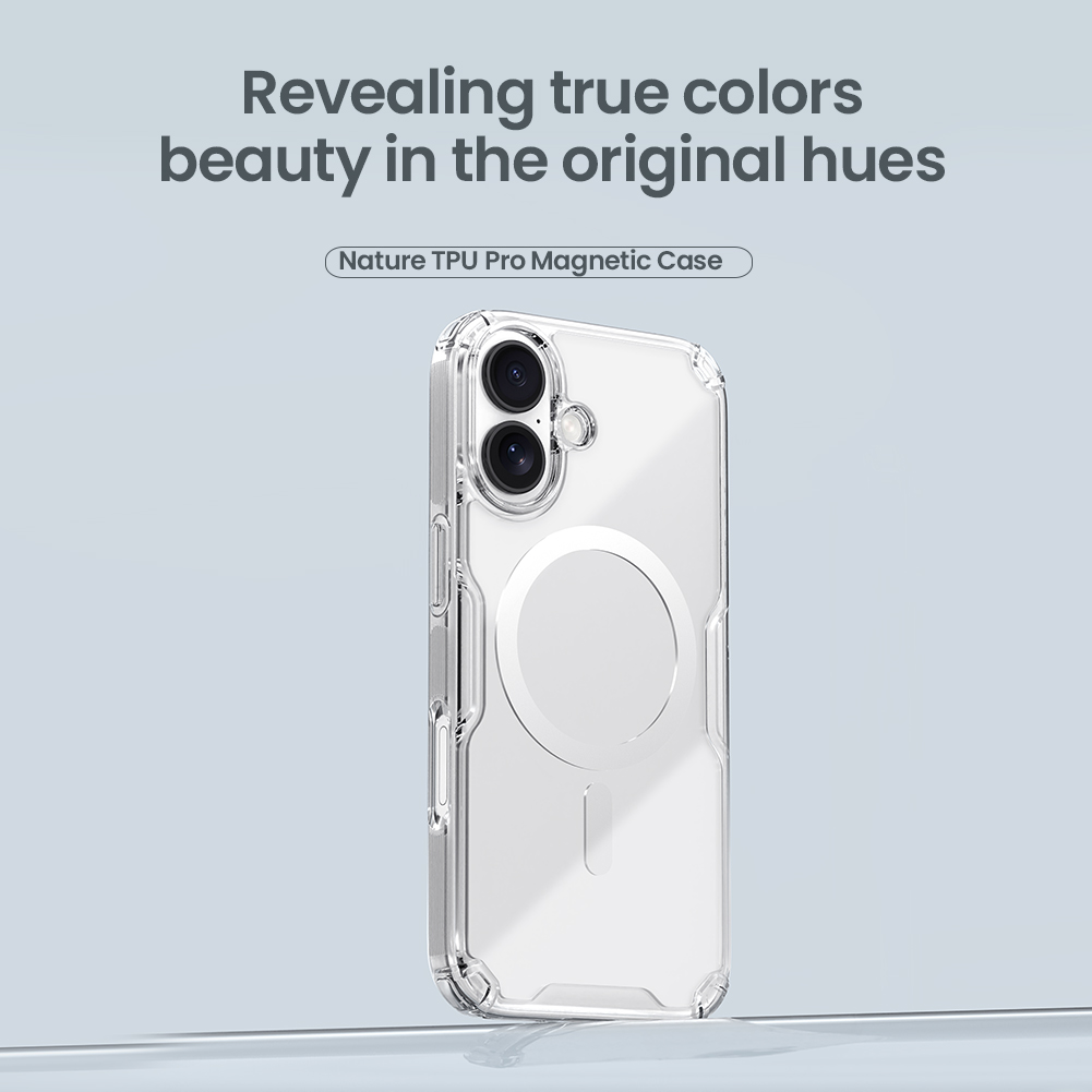 Прозрачный усиленный чехол от Nillkin серии Nature TPU Pro Magnetic Case с функцией поддержки магнитной беспроводной зарядки MagSafe. Прозрачный усиленный чехол от Nillkin - идеальное решение для защиты вашего iPhone 17. Изготовлен из качественного TPU, он обеспечивает надежную защиту от царапин и падений. Благодаря противоскользящим вставкам с двух сторон и ударопрочным подушкам безопасности по четырем углам, ваш смартфон будет полностью защищен даже при сильных ударах. Чехол имеет функцию поддержки магнитной беспроводной зарядки MagSafe, что делает его еще более функциональным. Отличительная черта этого чехла - его прозрачность, которая сохраняет оригинальный дизайн вашего iPhone 17.